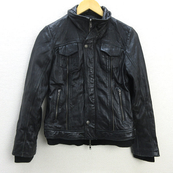 H■リューグーレザーズ/Liugoo leathers 羊革 ラムレザージャケット【2】黒/LADIES向き■38【中古】