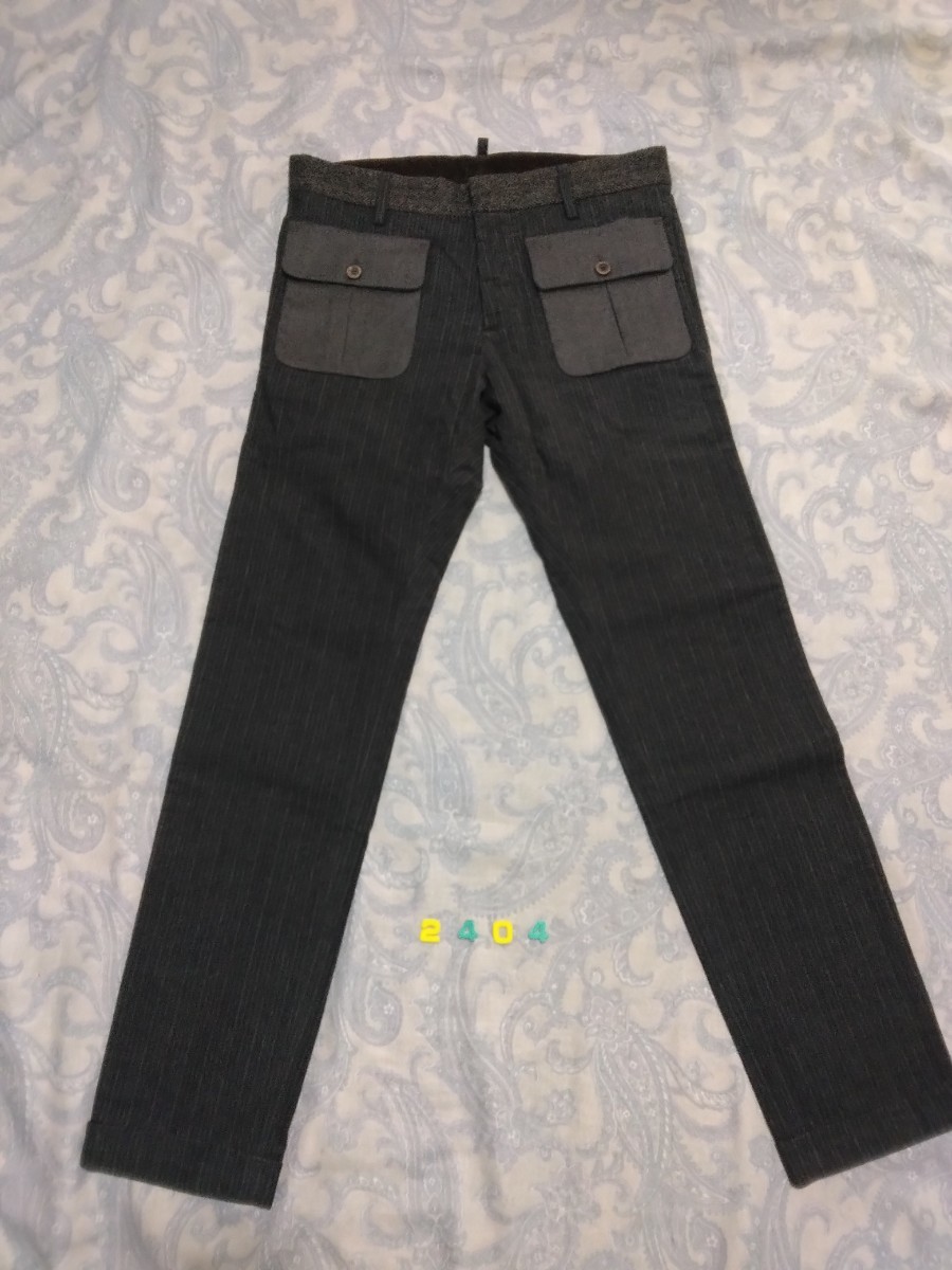 《商品説明》ディースクエアード後ろポケットロゴプレートつき前フラップポケット異素材切替えし裾ロールアップロングパンツです。サイズは44です。ボタンフライです 前左側のフラップポケットの上の所横一直線の所ボコッと出てる所1,5cmほど破れております。後ろポケットはフェイクです。服の内側の白いタグに26とマジック等で書かれてますあくまで中古なので経年劣化や汚れ等があること前提でお願い致しますので完璧を求める方は入札しないで下さい。NCNRでお願いします。悪い評価の多い方の入札はこちらの判断で消させて頂きますのでご了承下さい。落札日から2日以内のご連絡とかんたん決済の入金期限を守れる方の入札のみにさせていただきます。ご希望でしたら同梱致します。取り置き期間は最初の落札品のかんたん決済の入金期限迄に全ての落札品の合計金額を入金できるまでの期間とさせて頂きます。発送作業は主に平日になります。