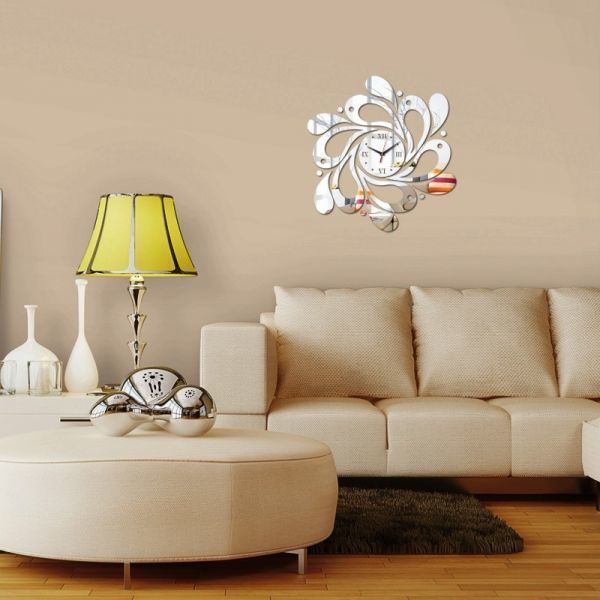 壁掛け時計 3D 鏡 ミラー フラワー 北欧モダンDJ258