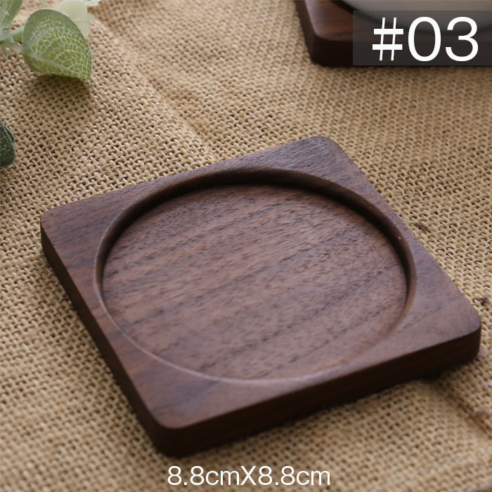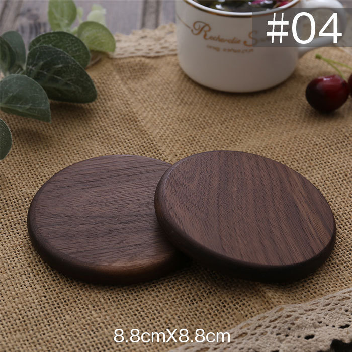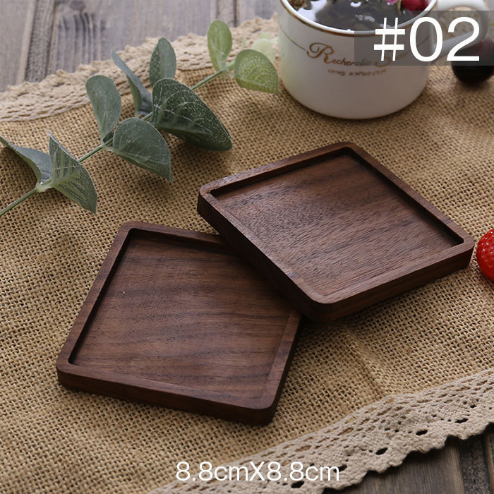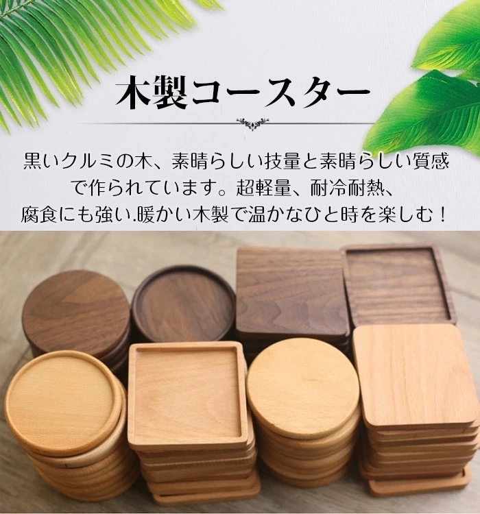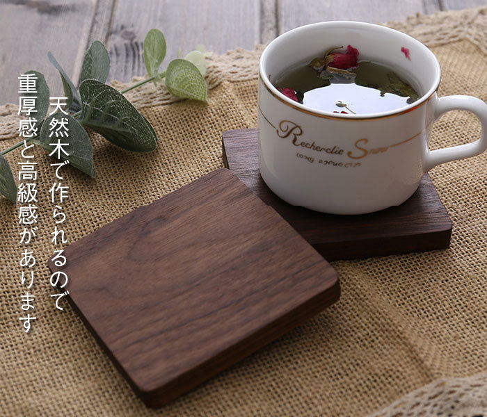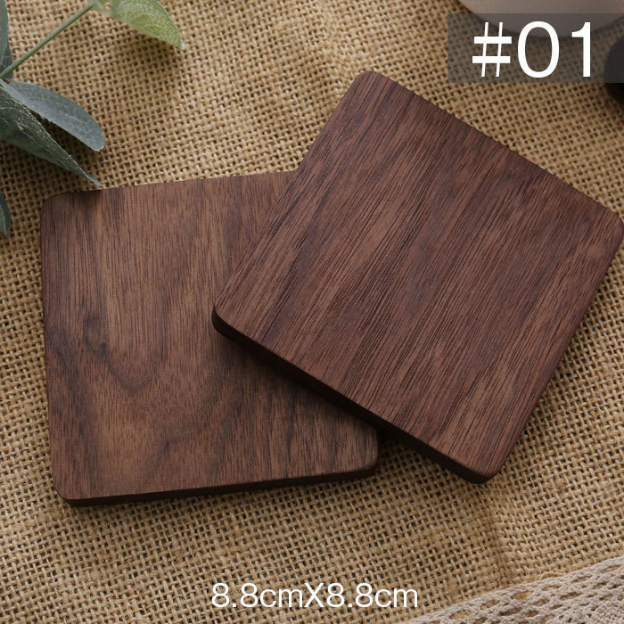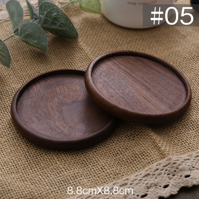 コースター 木製 断熱 簡約丸型 正方形 茶托 断熱 茶パッド 滑り止め 木製 2枚セット 防水 クルミ 8.8cm 和風コースター DJ1196