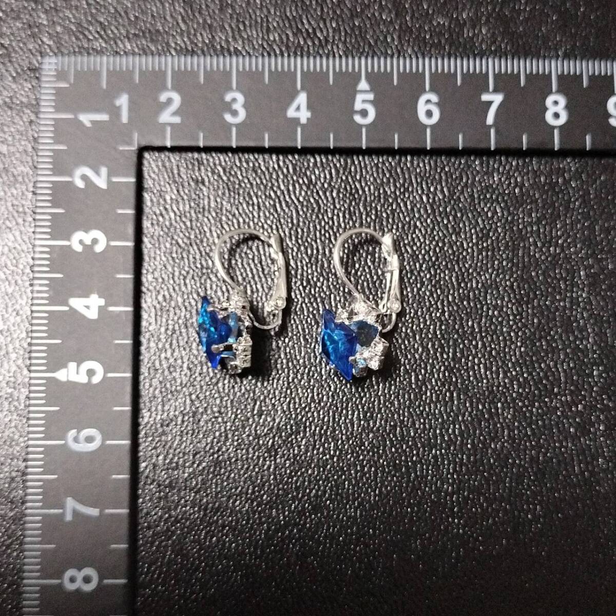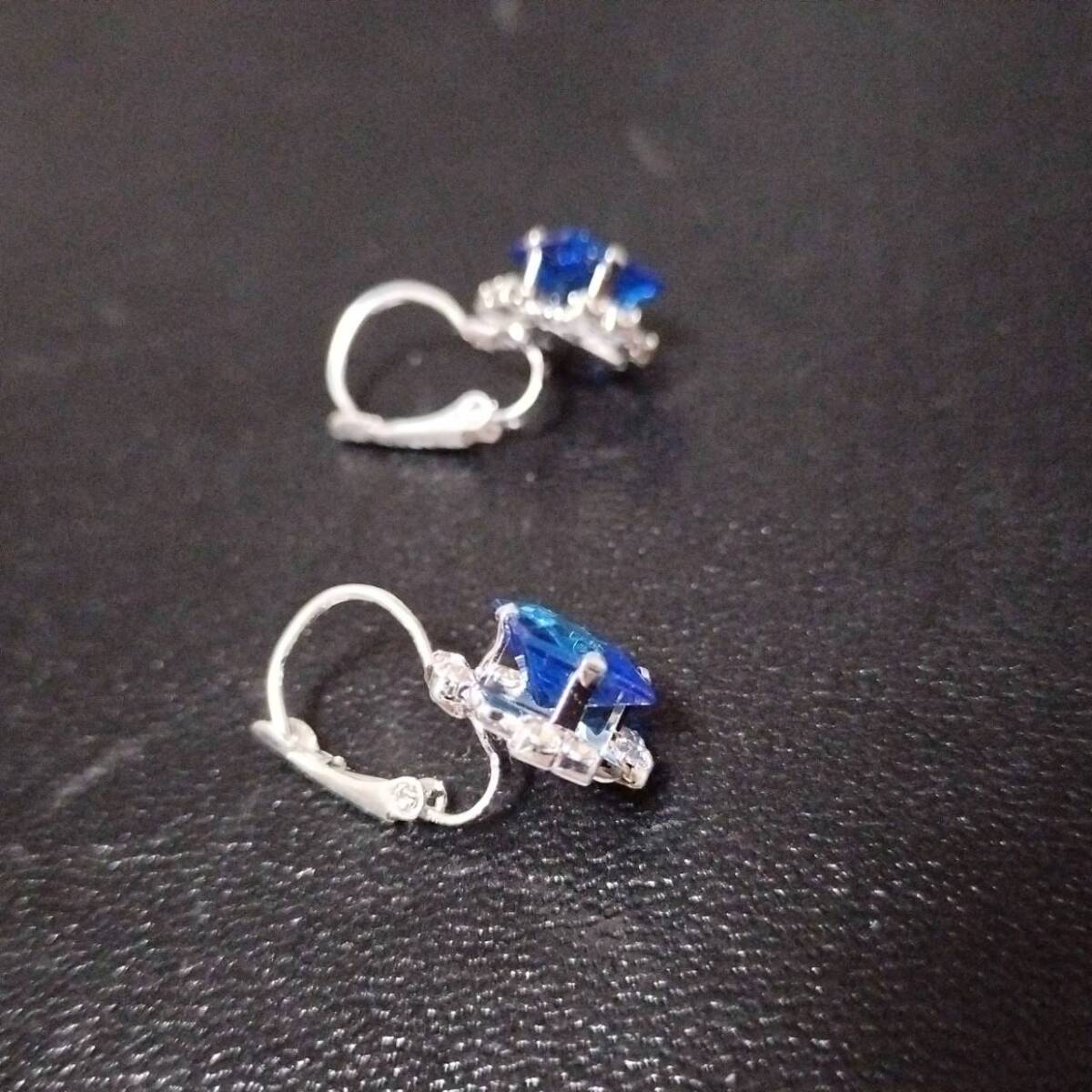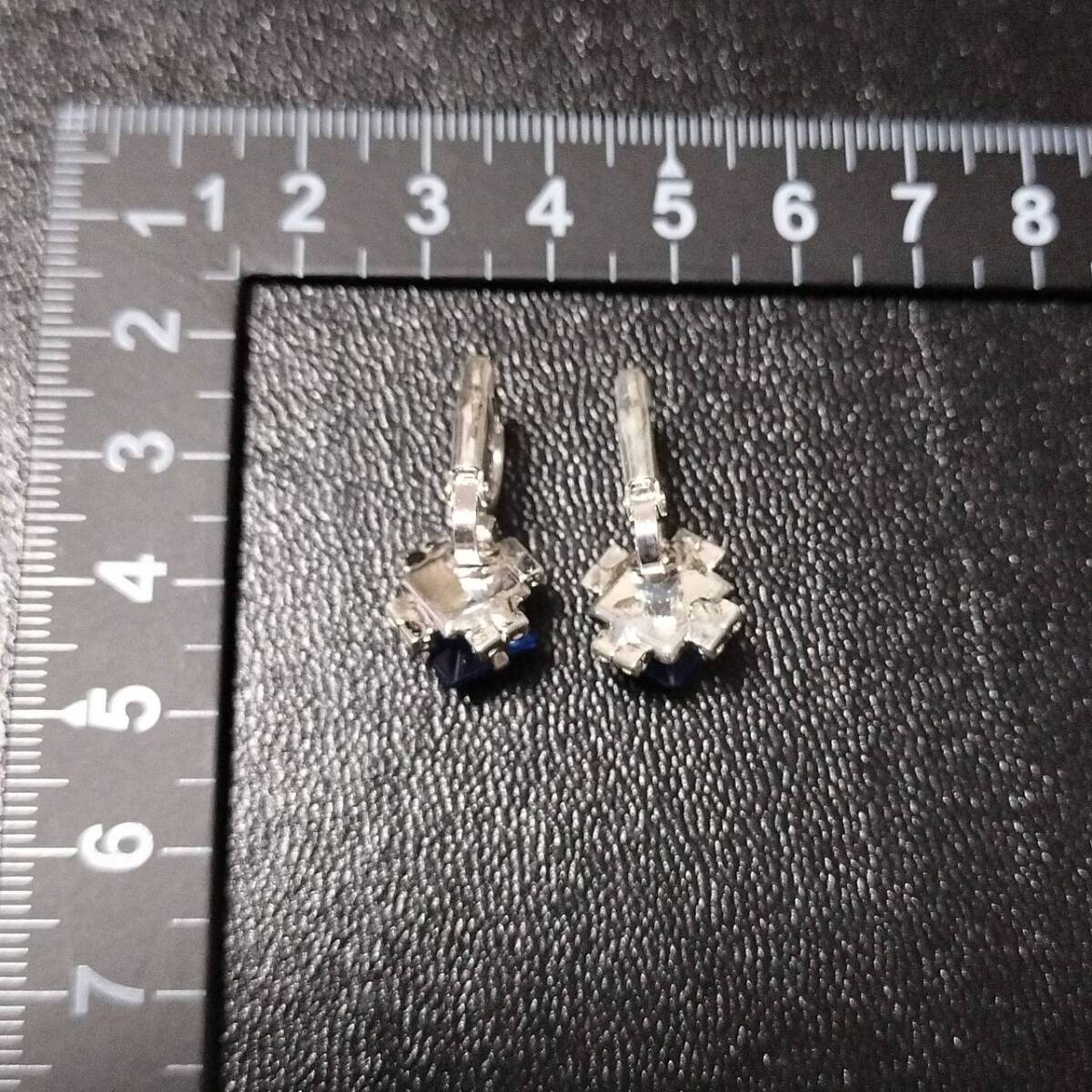 新品未使用 ピアス シルバー フープ 青 ブルー スクエア 四角 クリスタル レディース 韓国 ラインストーン ドロップ 女性 #D168-2