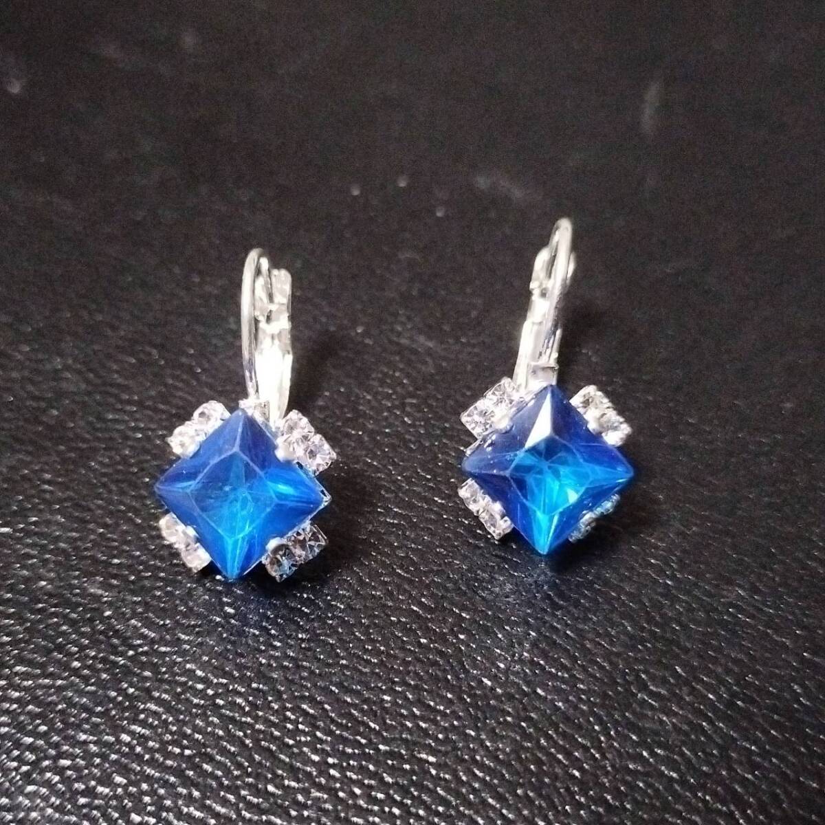 商品説明ピアス シルバー フープ 青 ブルー スクエア 四角 クリスタル レディース 韓国 ラインストーン ドロップ 女性 ウェディング ジュエリー ギフト ファッション シャイニー