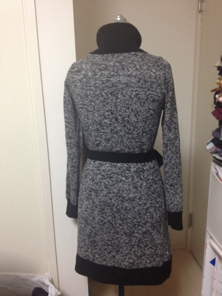 着丈78 ベルト付き 衿は二目ゴム編みのタートルネックです。