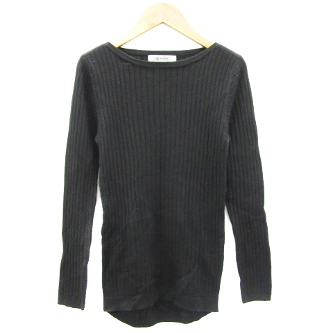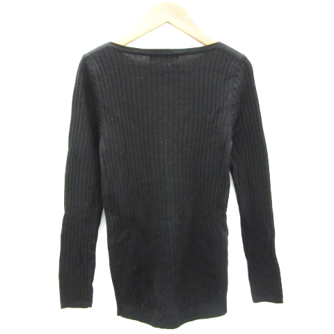 ナノユニバース nano universe リブニット カットソー 長袖 ボートネック ウール混 38 ブラック 黒 /YM32 レディース