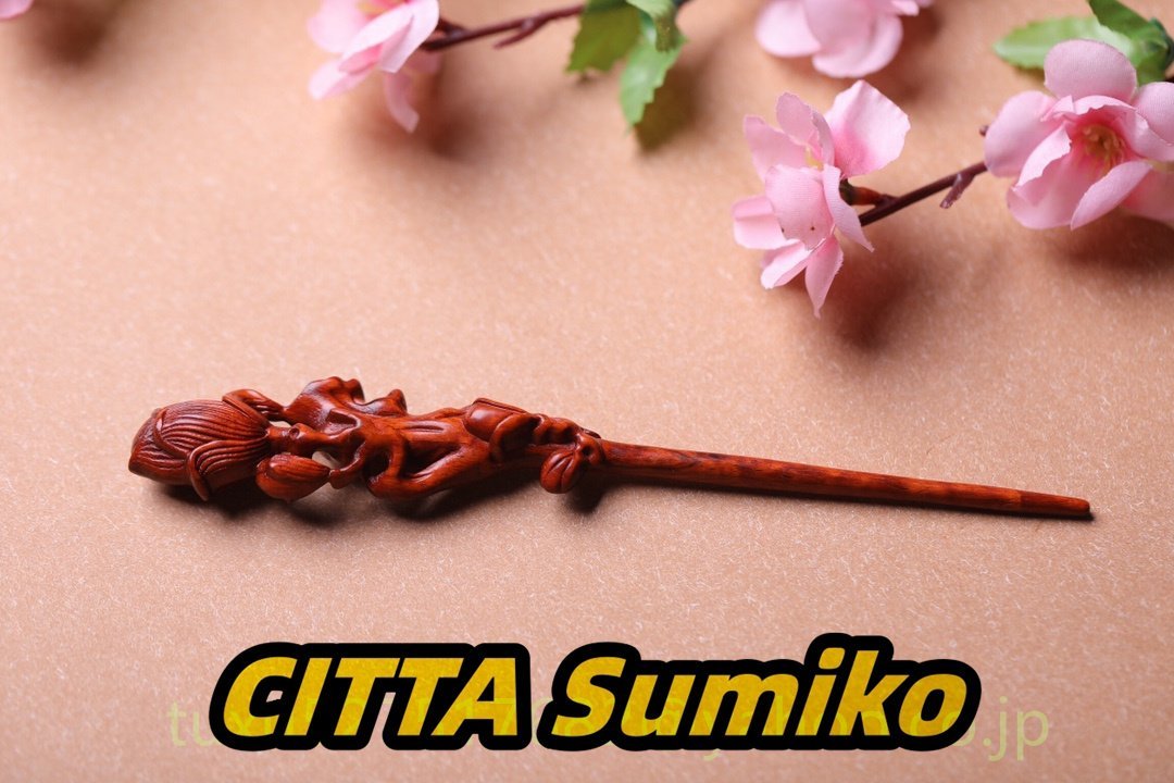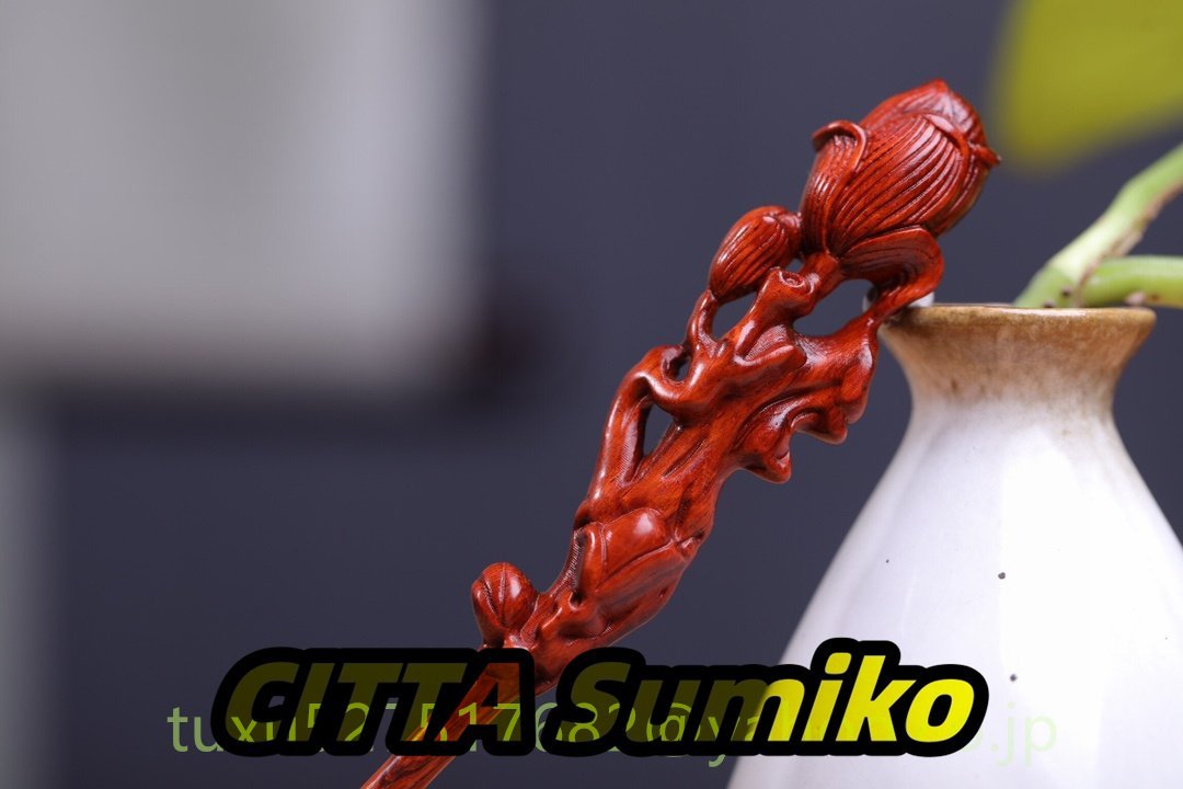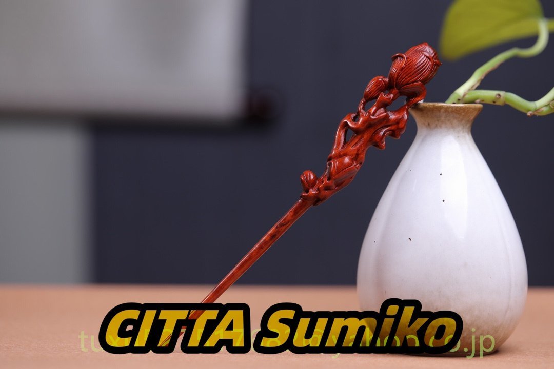 木彫 簪 着物 和装 小物 髪飾り 紫檀 NO.3
