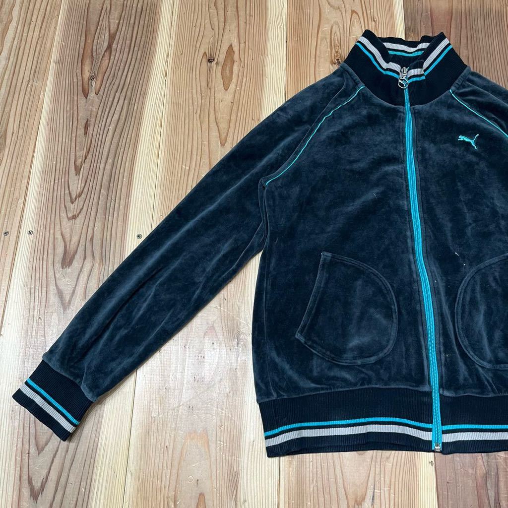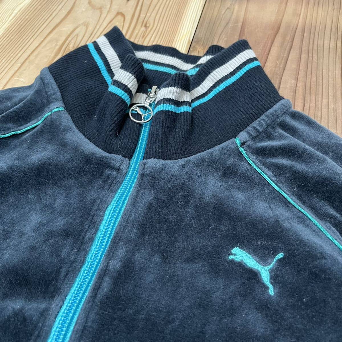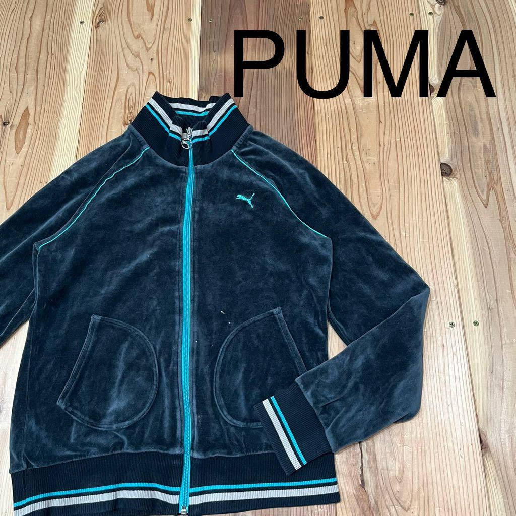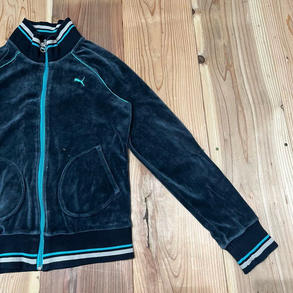 PUMA プーマ ベロアジャケット トラックジャケット ジャージ 刺繍ロゴ ネイビー レディース サイズL 玉mc2448