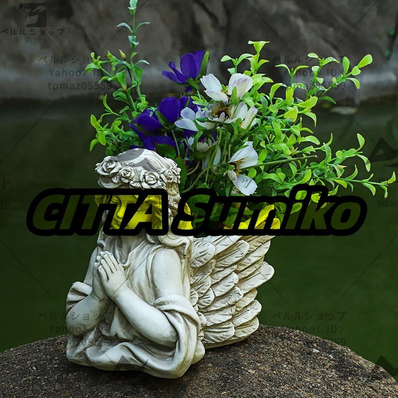 西洋インテリア 天使 祈り 祈るエンジェル プランター 花器 ガーデンオーナメント 雑貨 オブジェ 置物 フィギュリン 樹脂