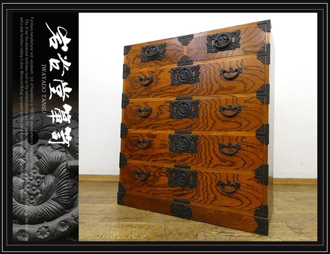 ◆FX167◆美品◆伝統工芸品◆岩谷堂箪笥◆欅材◆漆塗◆三、五尺◆5段◆整理箪笥◆和箪笥◆引出し収納◆チェスト◆衣類箪笥◆和モダン◆50万