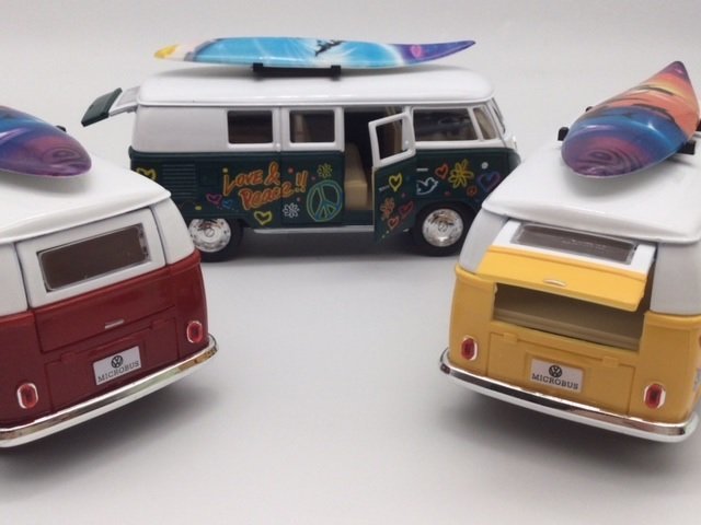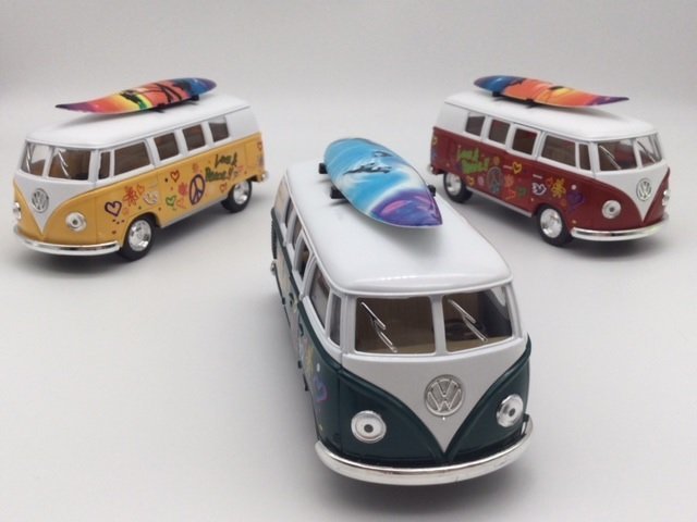 キンスマート社製 海外ライセンス品 1/32スケールのフォルクスワーゲン タイプ2の13ウィンドウバスです。(コンビ) 70年代をイメージしたサイケデリックな絵柄がプリントされたラブ&ピース お届けするのは画像1枚目の商品のみとなります。 2~4枚目は共通の画像となっております。ご注意くださいませ。 未使用、新品 リアゲートハッチ、サイドドア(片側)は開閉可能。 ※ルーフラック及びサーフボードは固定されている為、取り外しが出来ません。 プルバックアクション付きでチョロQみたいに走らせる事ができます。 素材はトップのホワイト部分はダイキャストメタル製、 サーフボード、ボディ下部、内装、シャーシはプラスチック製。 ミニカーサイズ:全長約13.5センチ、高さ約6.5センチ、幅約5センチ。 内装はベージュ。左ハンドル。 *こちらは箱入り商品ではございませんので、ご注意くださいませ。 ●神経質な方にはお勧めできません● 1台1台検品し、丁寧に梱包しておりますが、 入荷時からのかすかな傷、汚れ、塗装ミスがある場合があります。 |