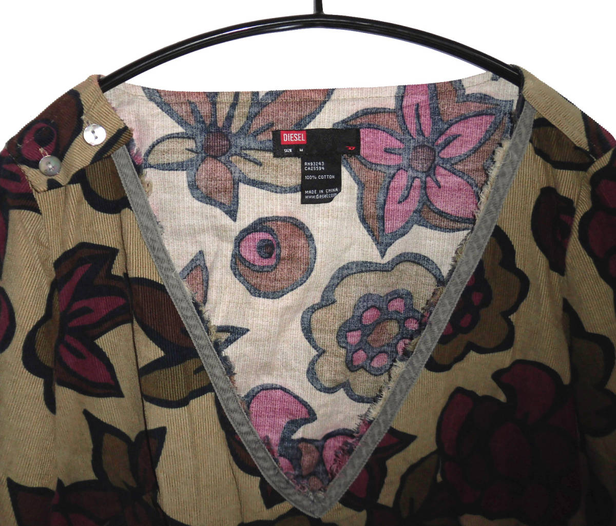 イタリアの人気ブランド、ディーゼルの雰囲気の良い細畝のフラワー柄のコーデュロイ生地を使用したワンピースです。