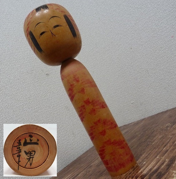 (☆BM)こけし[1124-⑤]正男 作/高さ29.5㎝ 木製 コケシ 日本人形 旧家蔵出し品 アンティーク レトロ 小木偶人KOKESHI