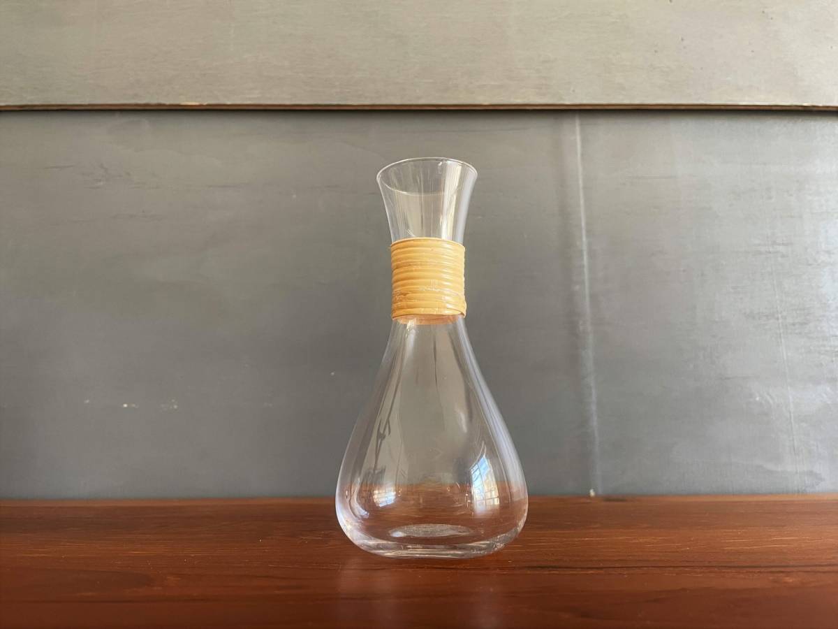 [9249]ベース 15cm 籐 ラタン ガラス 一輪挿し 花瓶 ヴィンテージ ビンテージ モダン
