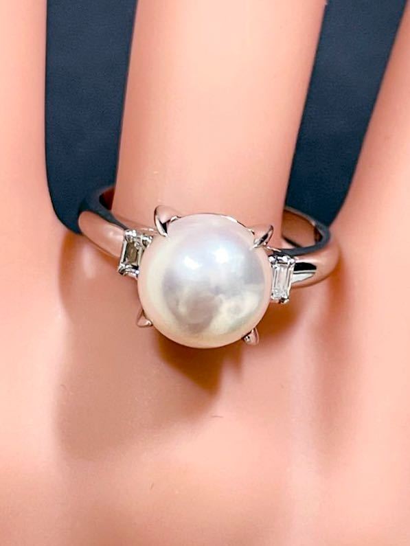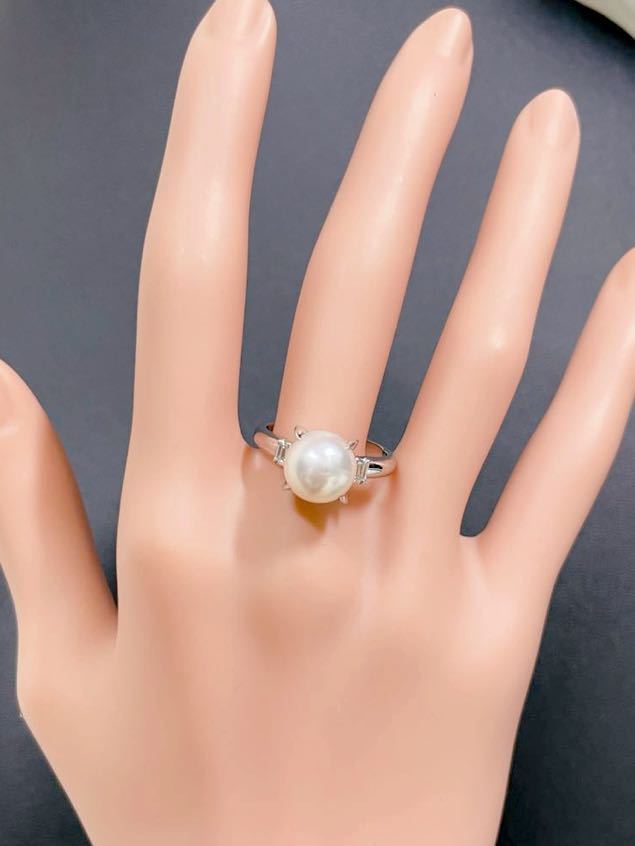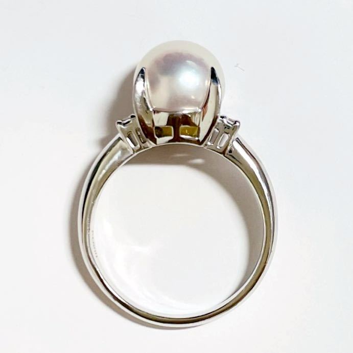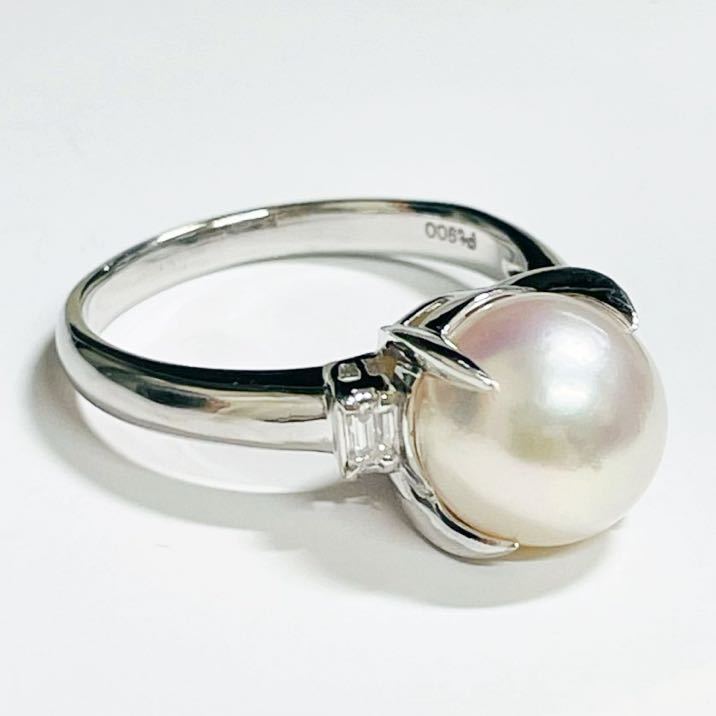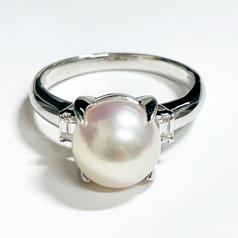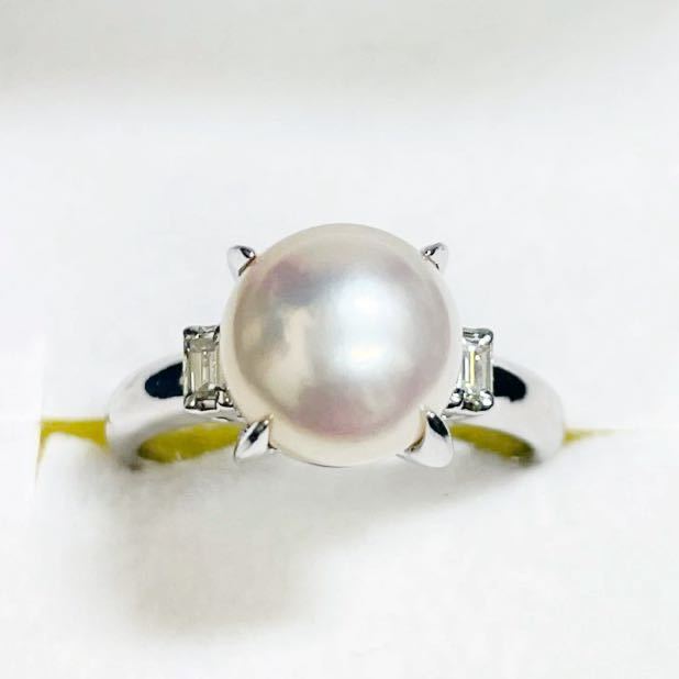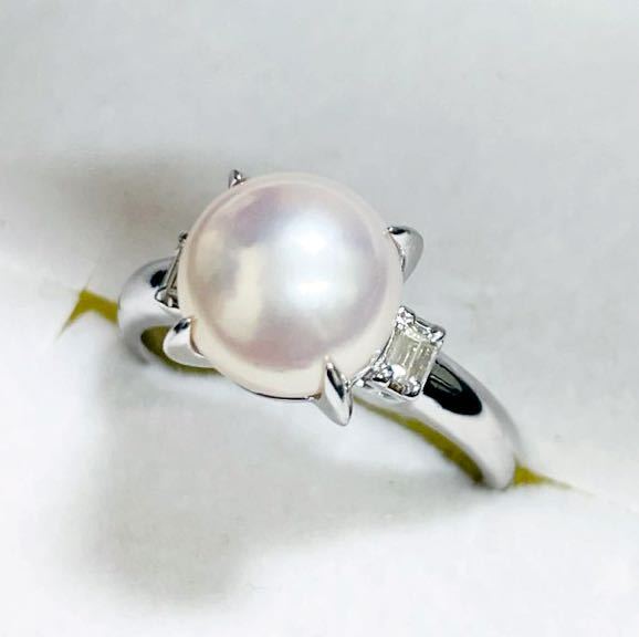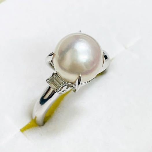 こちらは、Pt900台にパール1個&テーパーカットダイヤ2石付きリングです。