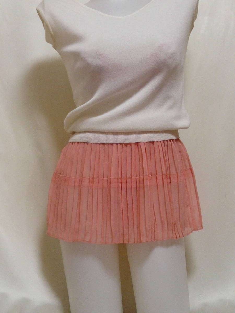 ♪♪やわらかなピンクオレンジ系の超マイクロミニ☆シースループリーツ^^♪♪