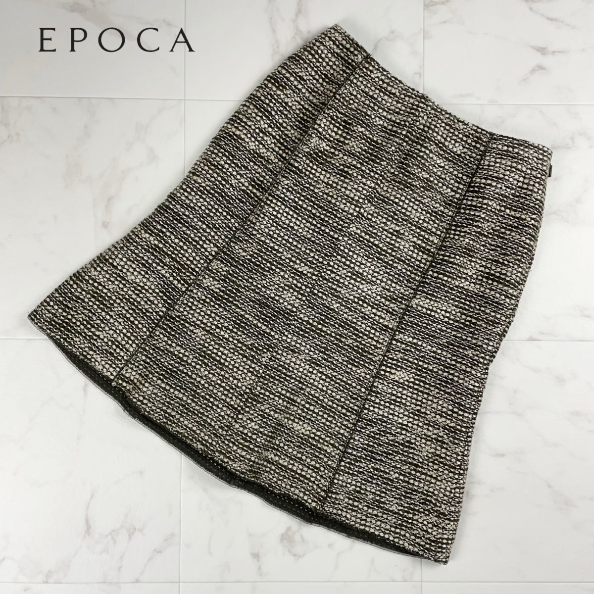 美品 EPOCA エポカ ウール ツイードフレアスカート 膝丈 裏地あり レディース ボトムス グレー系 サイズS*LC161