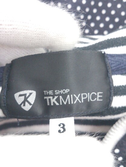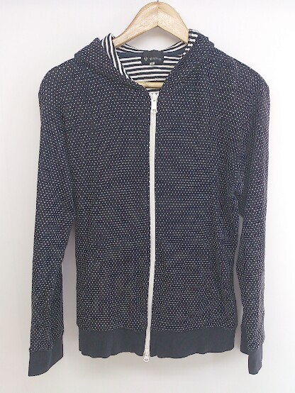 ◇ THE SHOP TK ザ ショップ ティーケー 水玉 ドット 長袖 ジップアップ パーカー サイズ3 ネイビー ホワイト レディース P