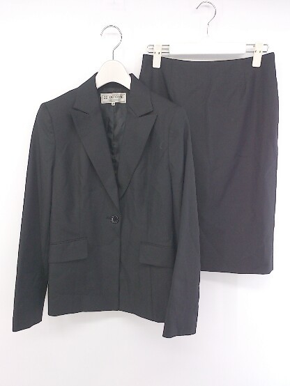 ◇ 22 OCTOBRE 1B ウール 膝丈 ジャケット スカート セットアップ サイズ38 ブラック レディース P