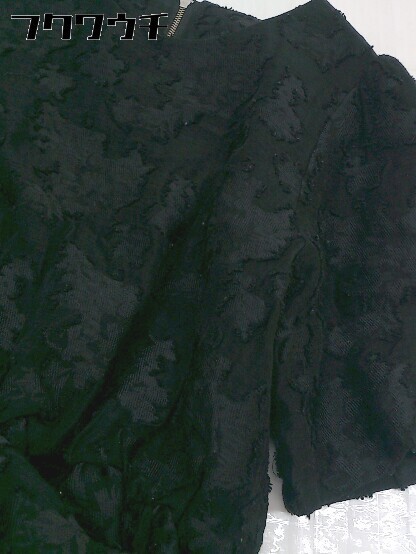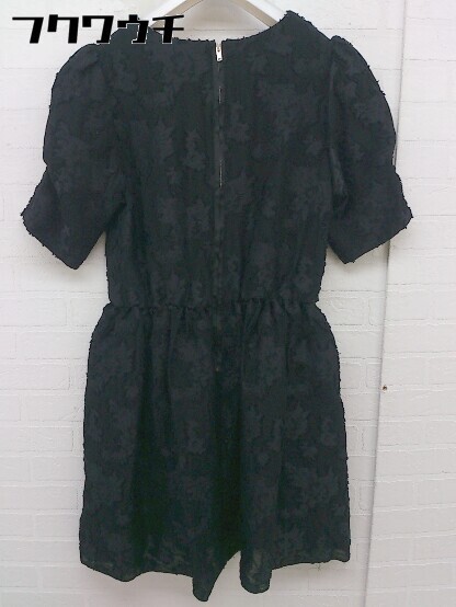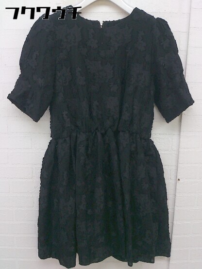 ◇ OKIRAKU オキラク バックジップ ウエストゴム 総柄 五分袖 膝丈 ワンピース サイズ0 ブラック レディース