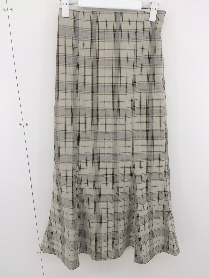 ◇ LOWRYS FARM チェック ウエストゴム マーメイド ロング フレア スカート サイズM ベージュ グレー マルチ レディース