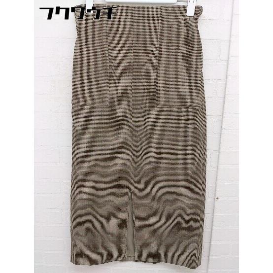 ◇ le coeur blanc サイドジップ チェック スリット 膝下丈 ナロー スカート サイズ38 ベージュ ブラウン レディース