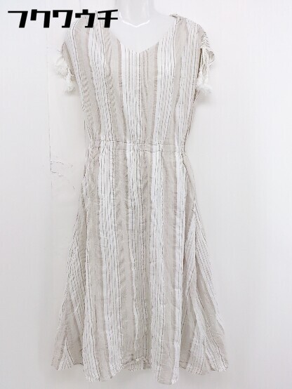 ◇ Techichi テチチ ストライプ 半袖 膝下丈 ワンピース サイズF ホワイト ブラウン系 レディース