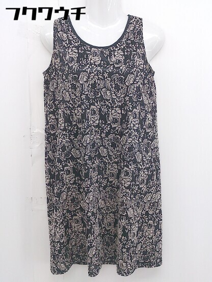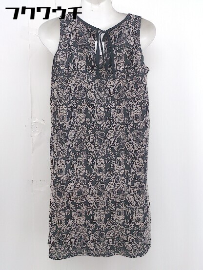◇ BARNEYS NEWYORK 総柄 ラメ ノースリーブ 膝丈 ワンピース サイズF ベージュ ブラック レディース