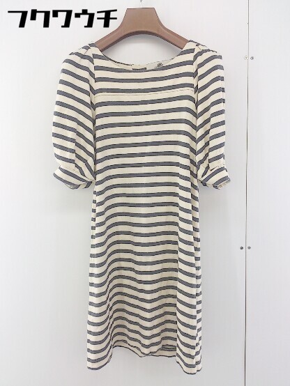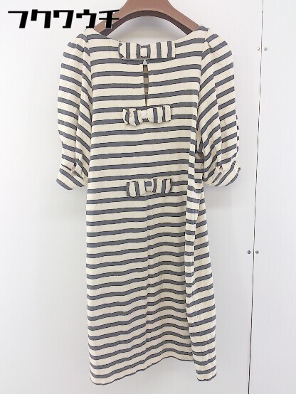 ◇ Kaon カオン ボーダー リボン 半袖 ミニ チュニック ワンピース サイズF ベージュ グレー レディース