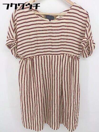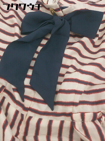 ◇ Broderie & Co nano universe ボーダー フレアスリーブ 膝丈 ワンピース サイズFREE ベージュ レッド レディース