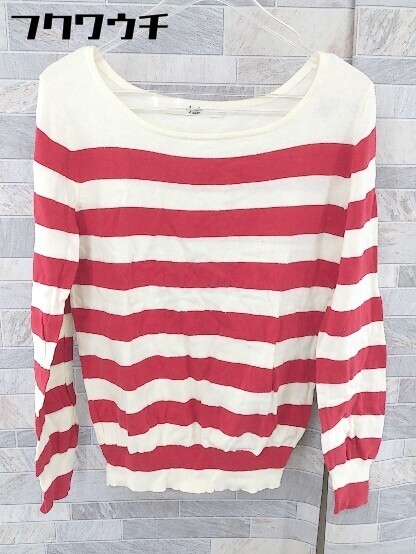 ◇ Another Edition アナザーエディション コットン ニット ボーダー 長袖 セーター オフホワイト レッド レディース