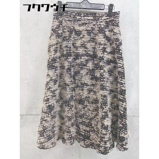 ◇ Futier land フューティアランド バックジップ 総柄 膝下丈 フレア スカート サイズM ブラック ベージュ レディース