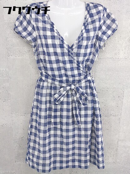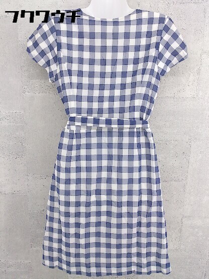 ◇ ◎ IENA イエナ ウエストベルト付き チェック 半袖 膝丈 ワンピース ネイビー ホワイト レディース