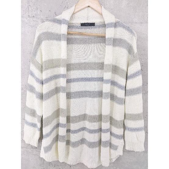 ◇ AZUL by moussy アズール バイ マウジー ボーダー 長袖 カーディガン サイズF ホワイト グレー レディース