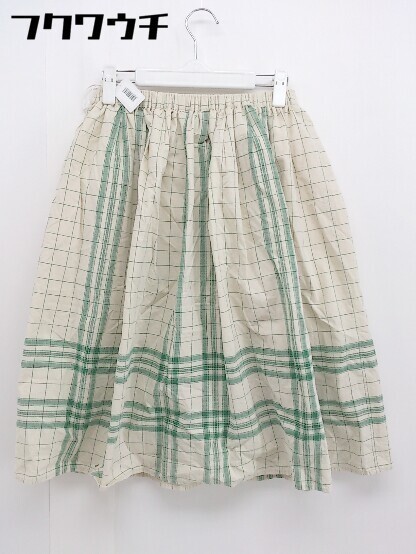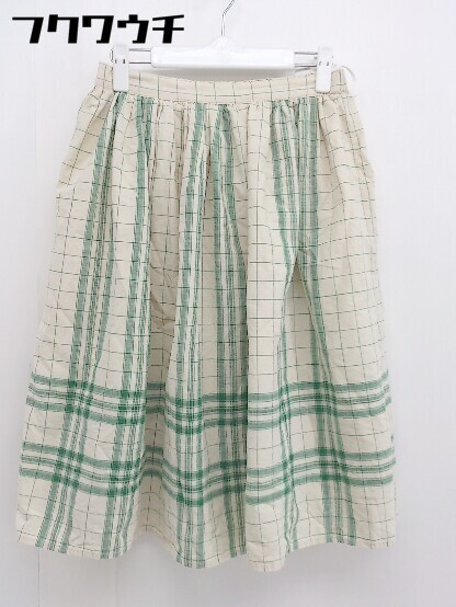◇ ehka sopo エヘカソポ チェック 膝下丈 フレア スカート サイズM ベージュ グリーン レディース