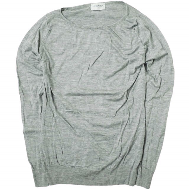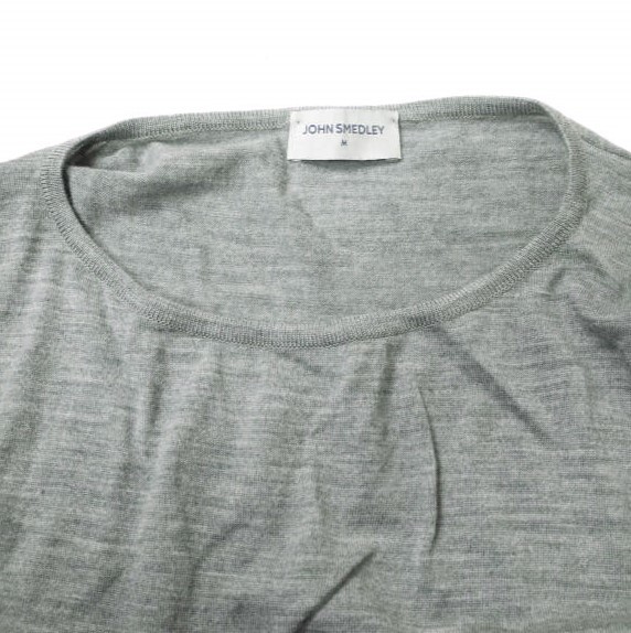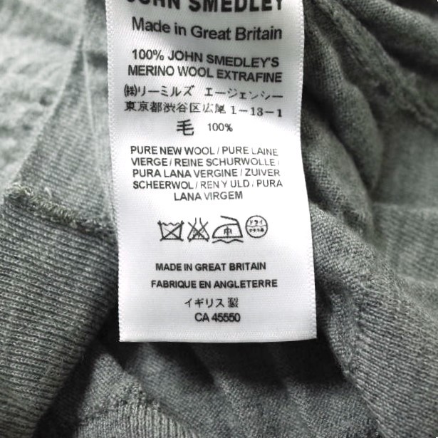 JOHN SMEDLEY ジョンスメドレー イギリス製 エクストラファインメリノウール Uネックニット M グレー セーター プルオーバー g14977