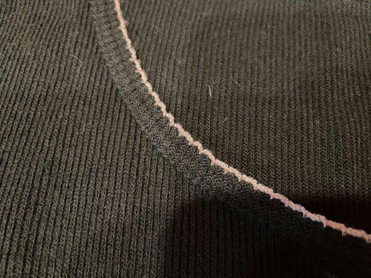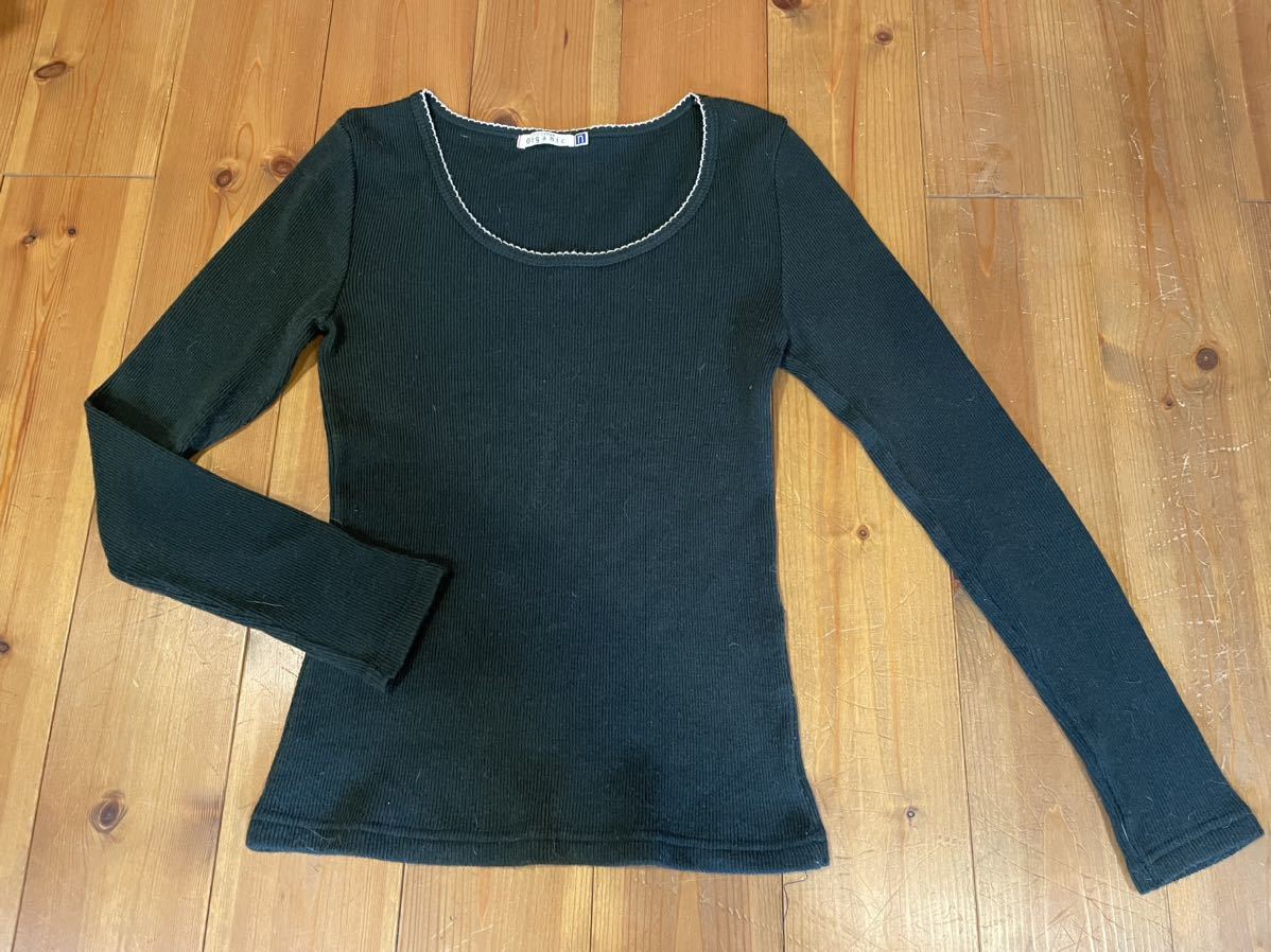 落ち着いたお色の、比較的薄手ニットトップスになります。