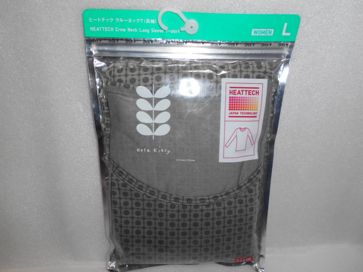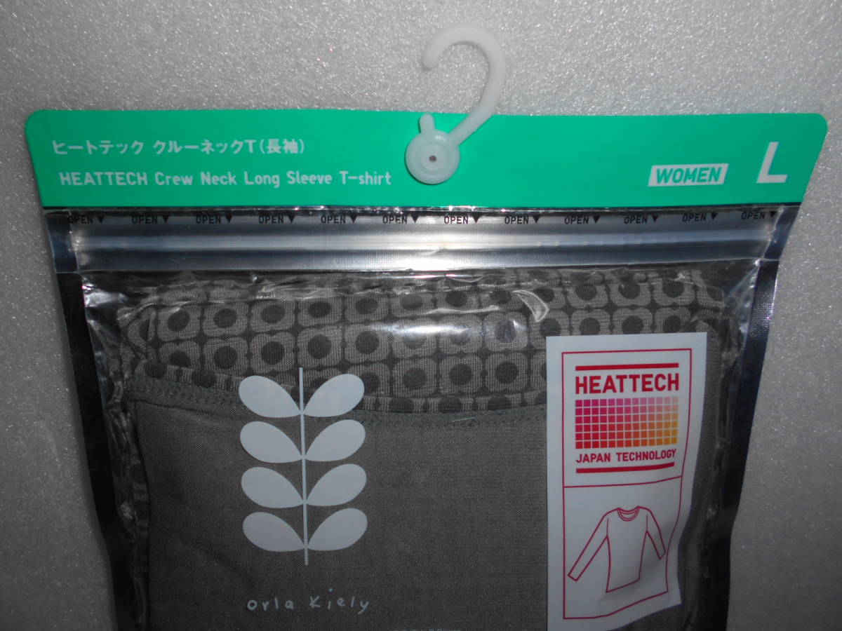 ①ユニクロ UNIQLO ヒートテック クルーネックT (長袖) ブラック Lサイズ WOMEN orla kiely オーラカイリー