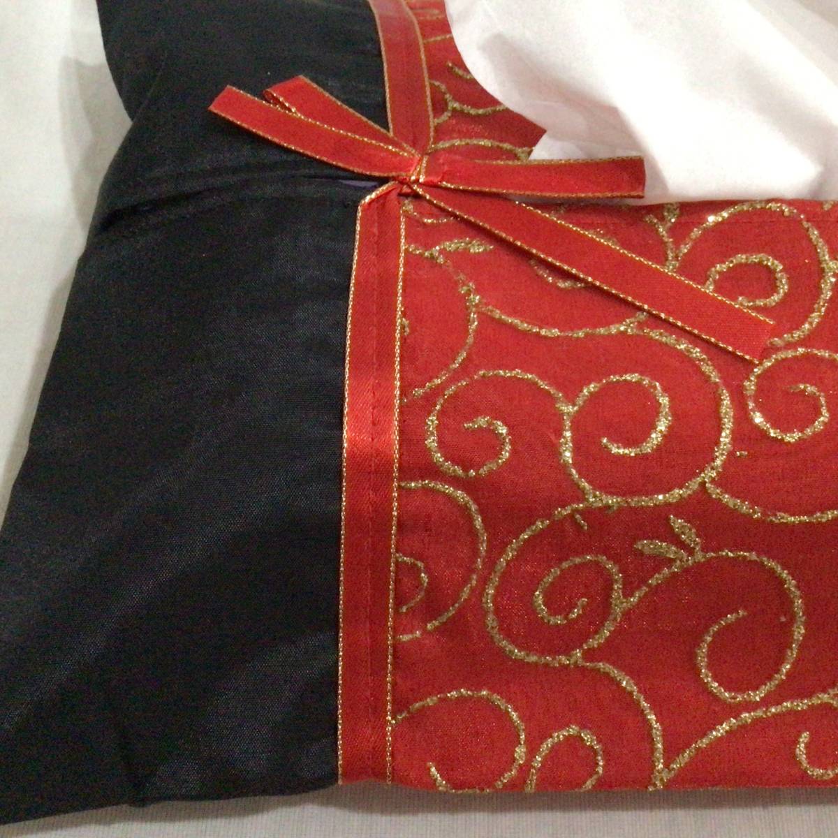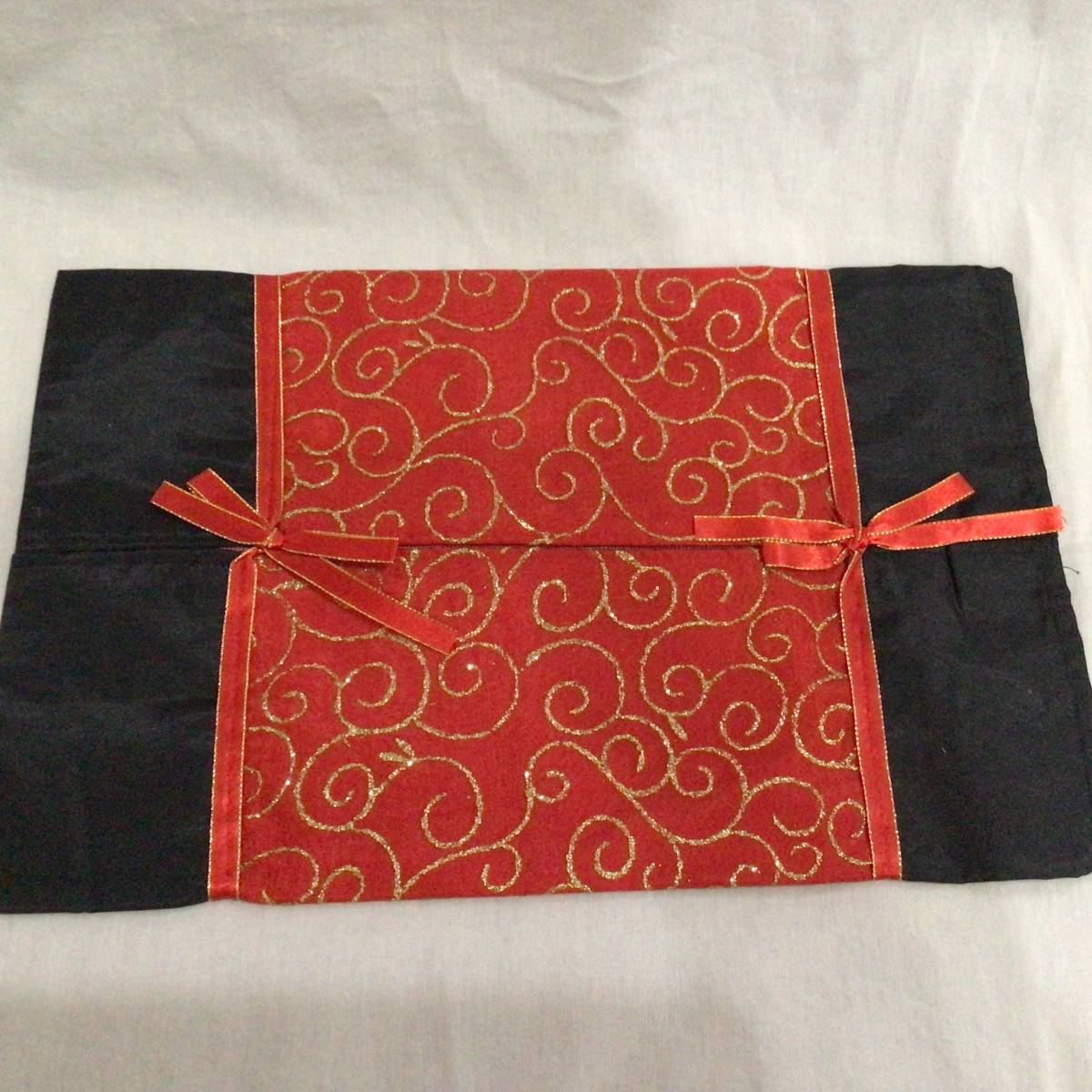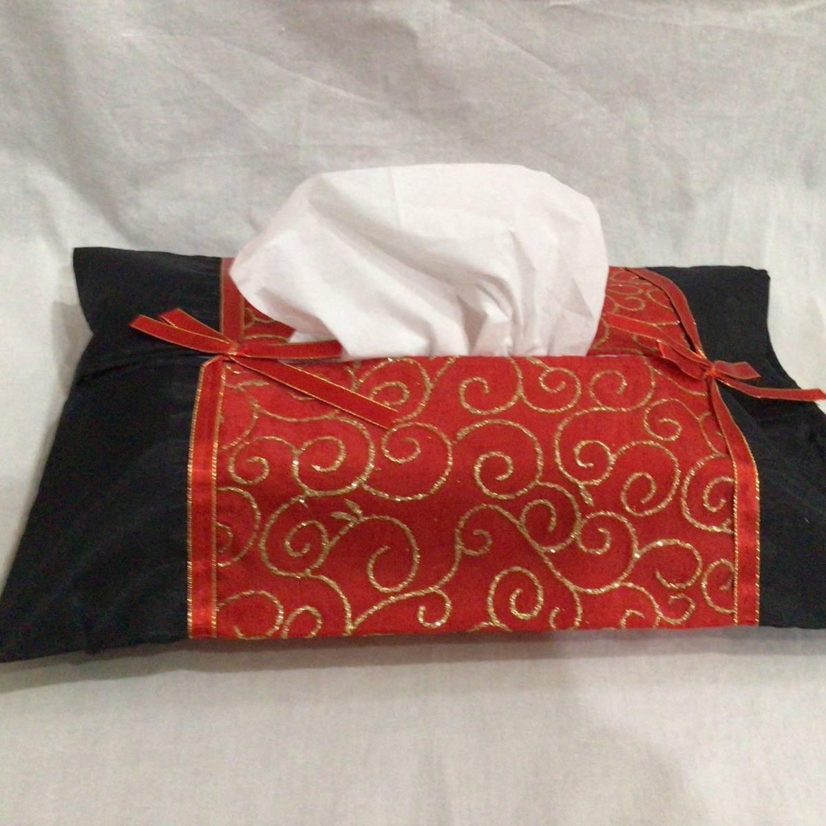 ティッシュ カバー 布 ケース 赤 金刺繍 約37×24㎝ アジアンテイスト タイ 送140