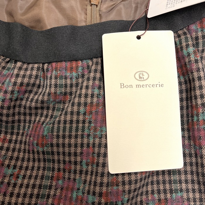 | 商品タイトル | 【新品】Bon mercerie フレアスカート チェック×花柄 ウエストゴム ポリ100% S (36) ブラウン 茶×黒×緑系×赤茶×ピンク レディース |