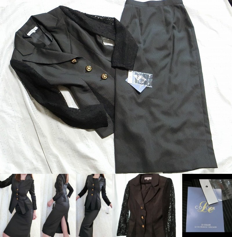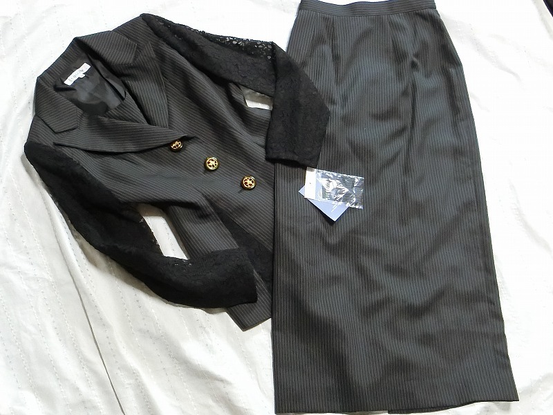 B71★新品タグ付★超ロングスリット★2Pスーツ★ストライプ バックスリット 深スリット★