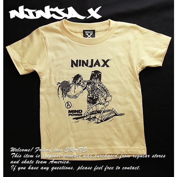 ■アンダーグランドスケートアパレル!!NINJA Xより新作キッズTシャツを入荷致しました!!フロントデザインはBad Brainsの代表的絵柄となったShawn Kerri女史の手がけた1981年のフライヤージャケットをサンプリング!!マニアックでミュージックライクな本年一押しオリジナルウェア!!1~5歳程の低年齢層キッズサイズボディ、Red、Naturalの2色展開でリリースです!!少量入荷ですのでお見逃し無く!!