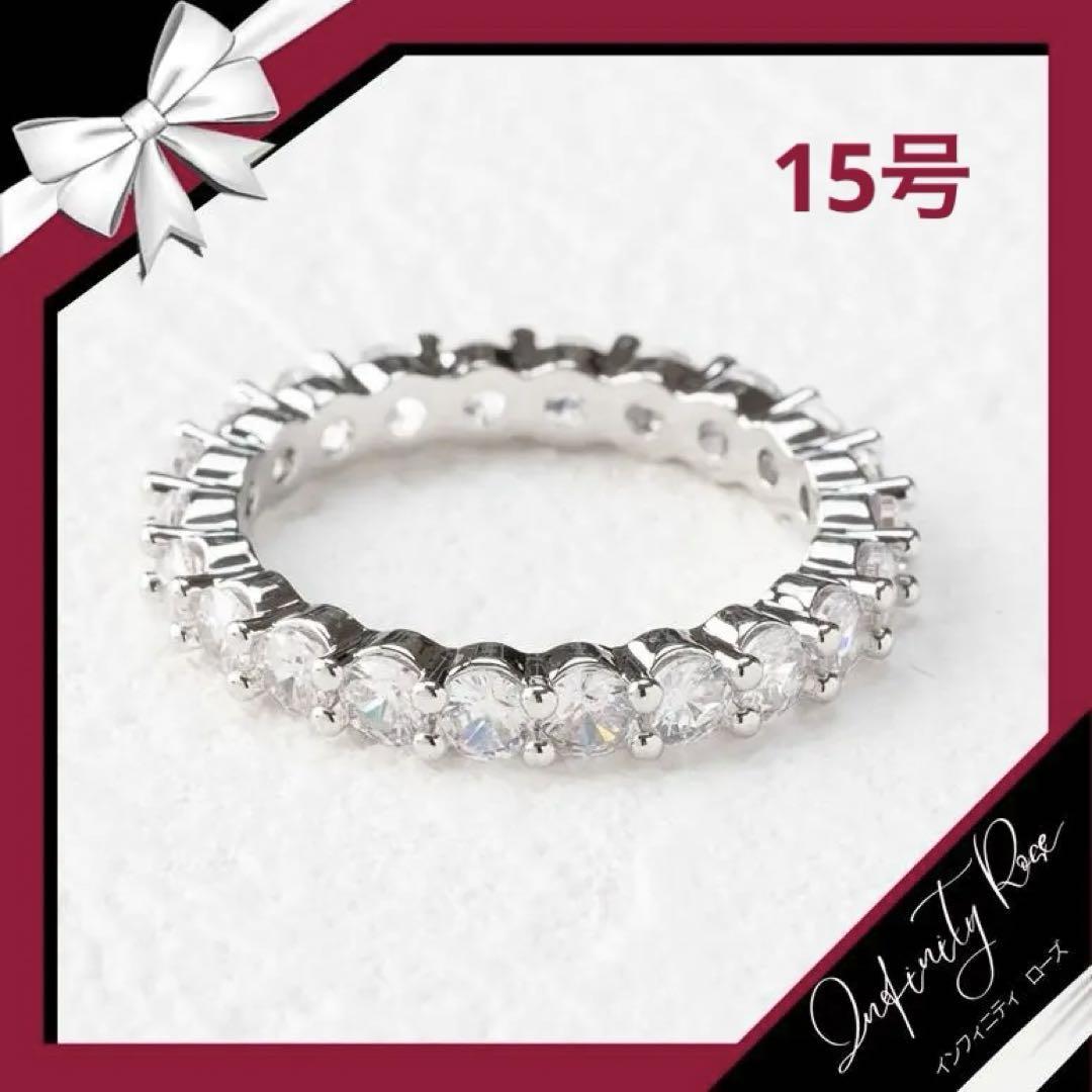 (R003S)15号 煌めくまんまる全周キュービックジルコニア(CZ)細リング 高価爪留め仕様 指輪