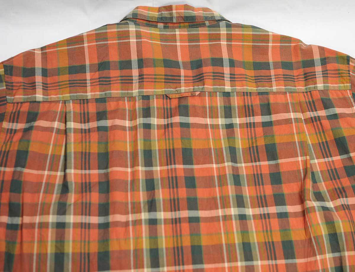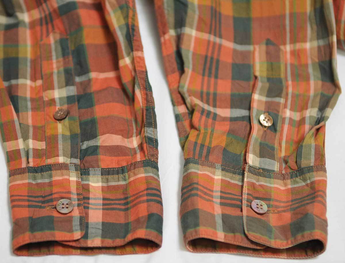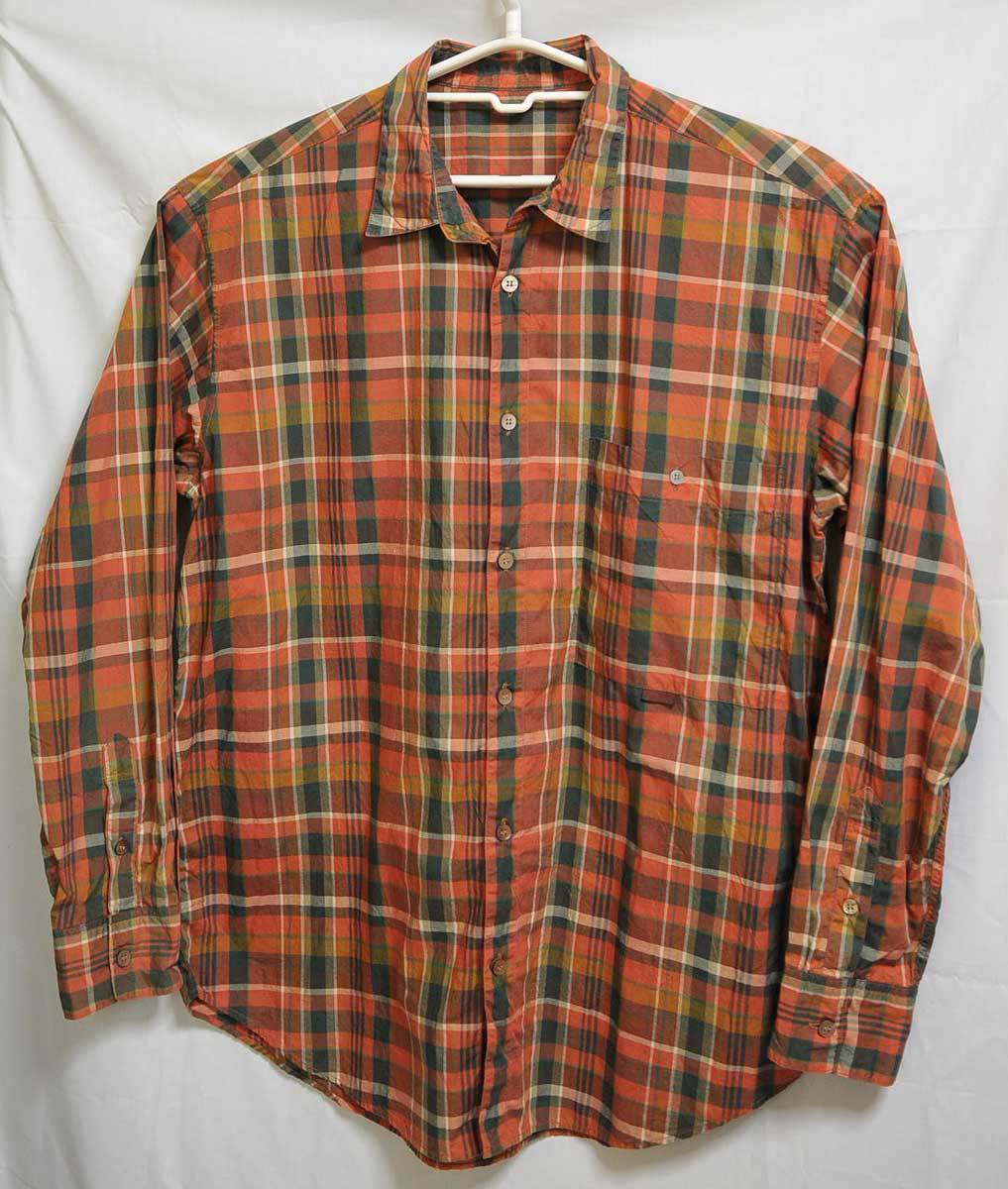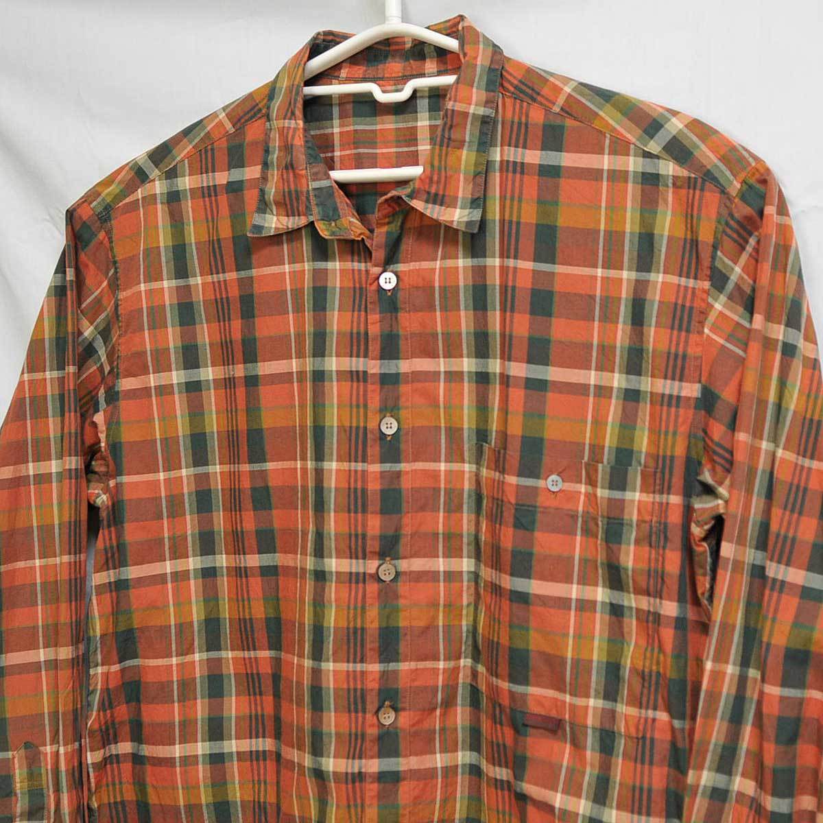 古着●パパス 長袖シャツ オレンジ グリーン チェック M