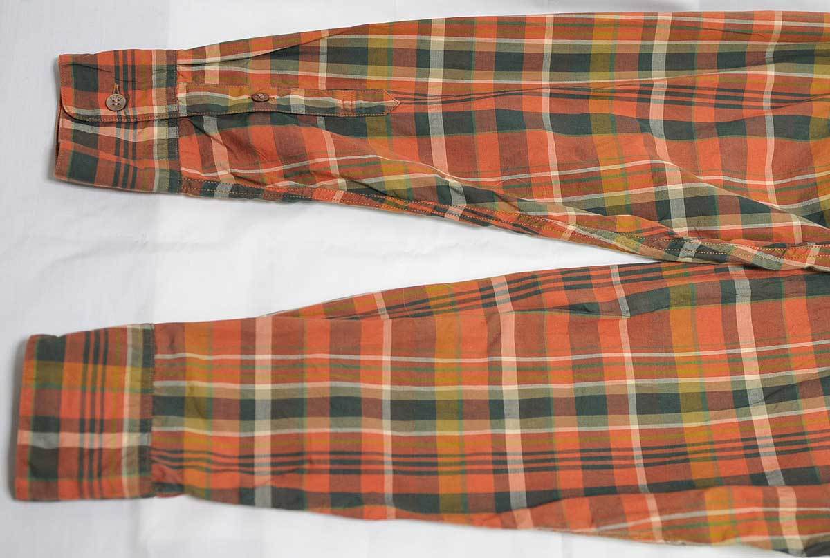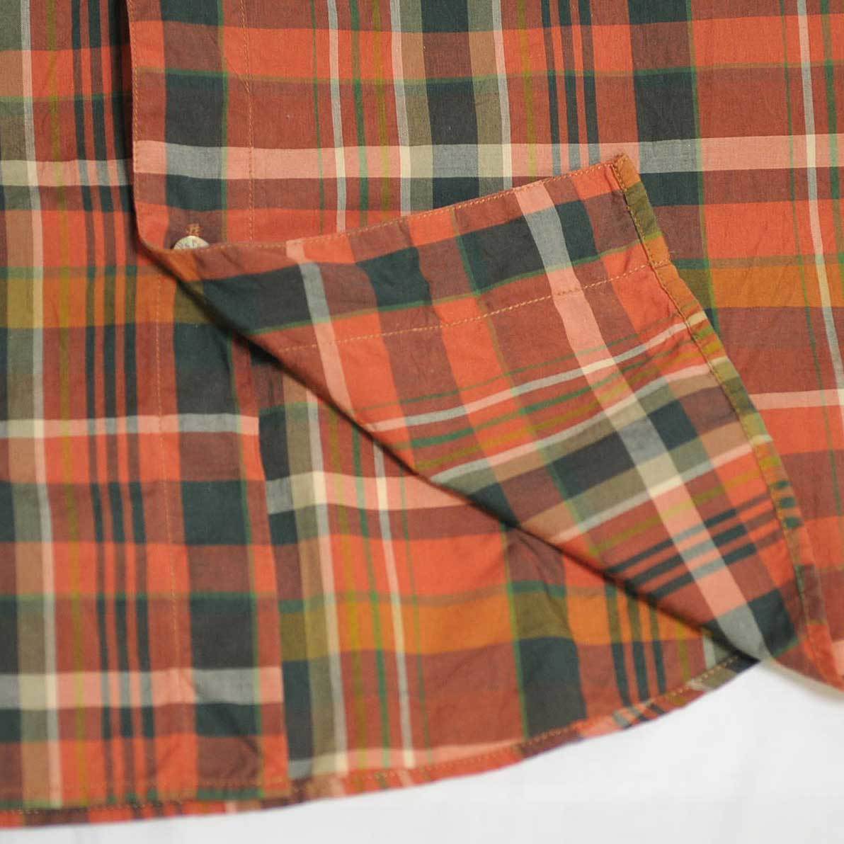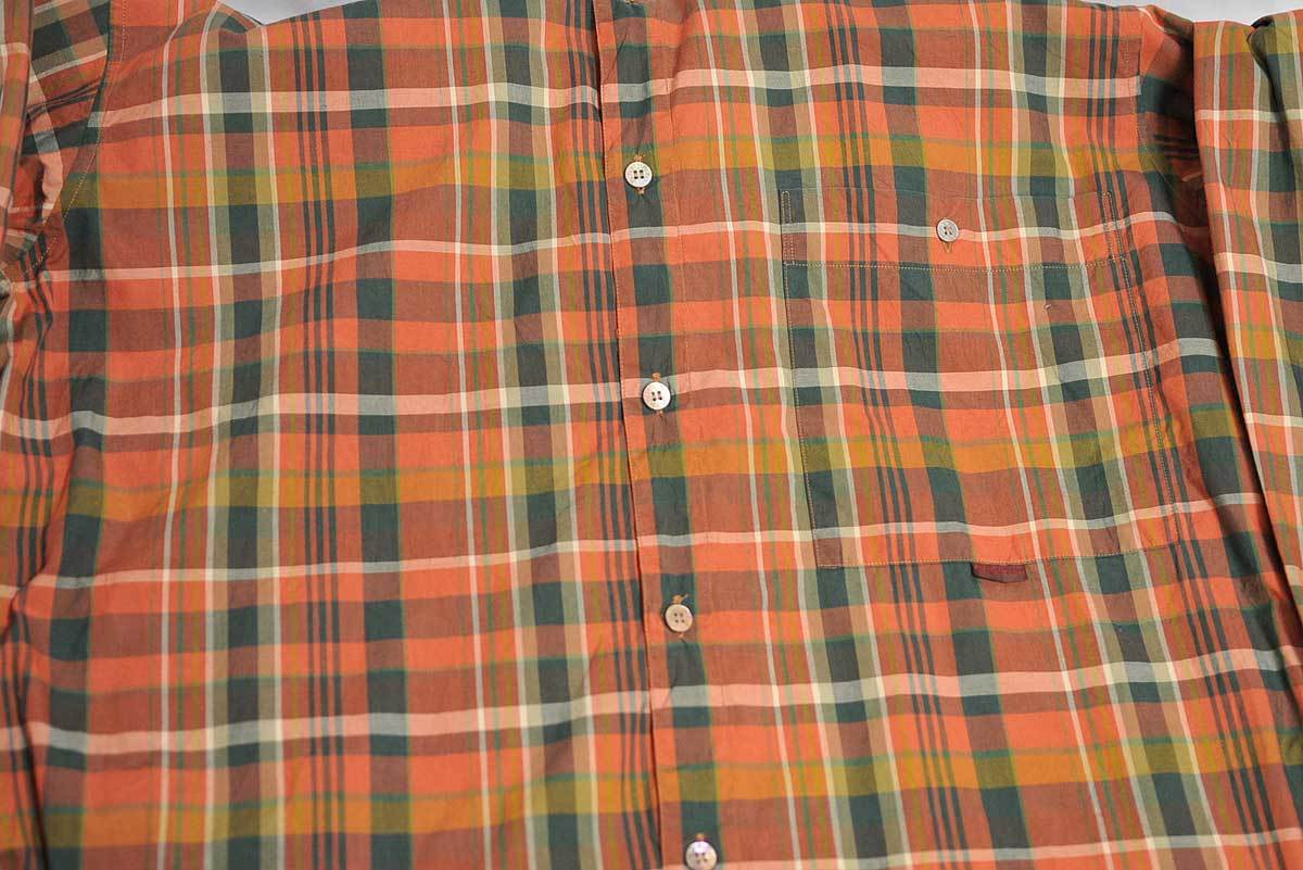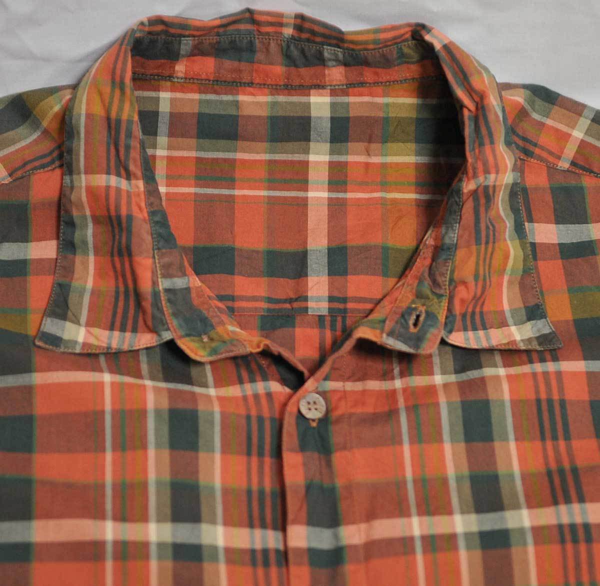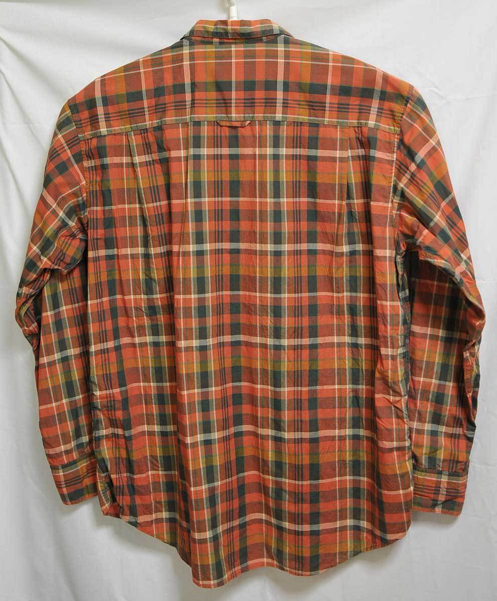 古着●パパス 長袖シャツ オレンジ グリーン チェック M