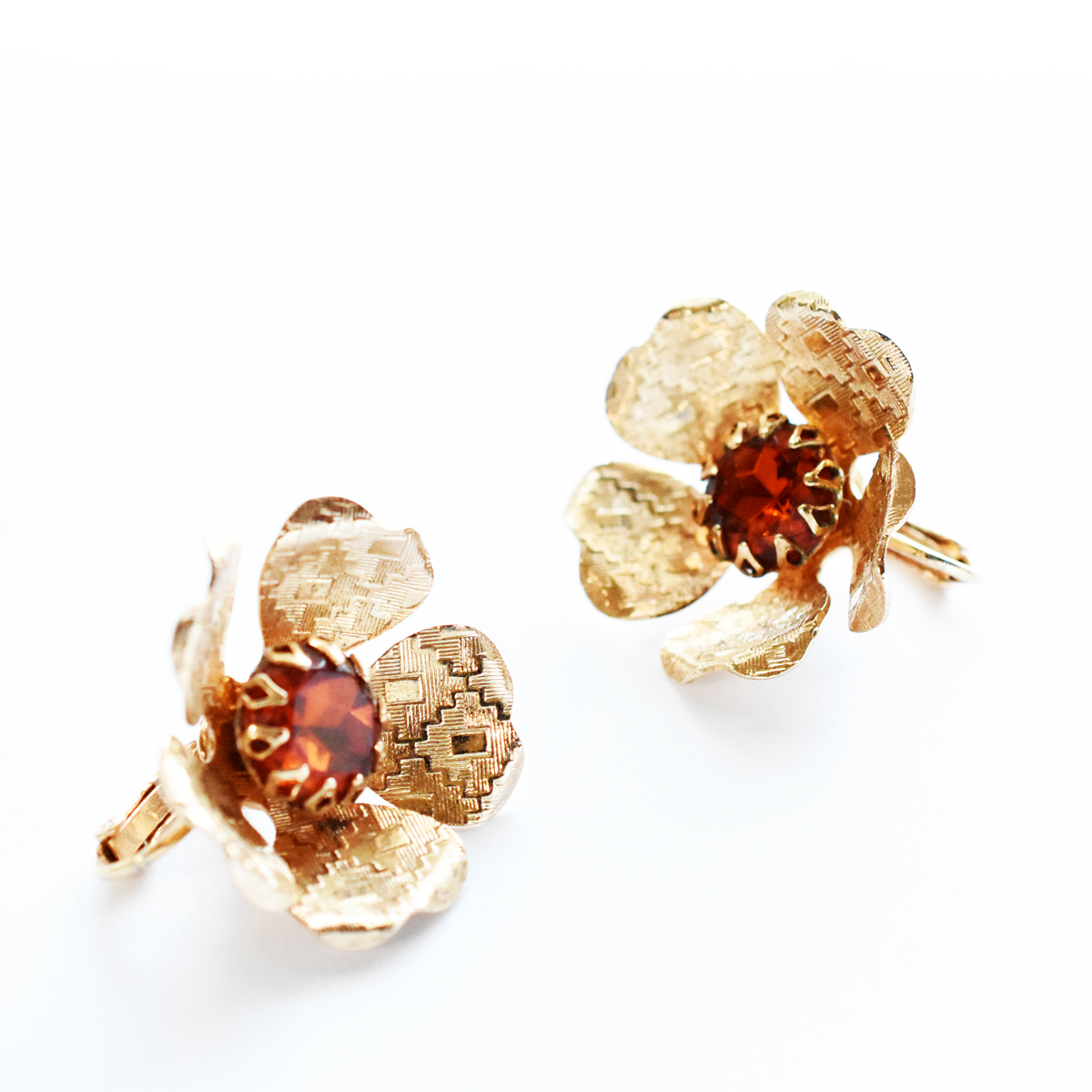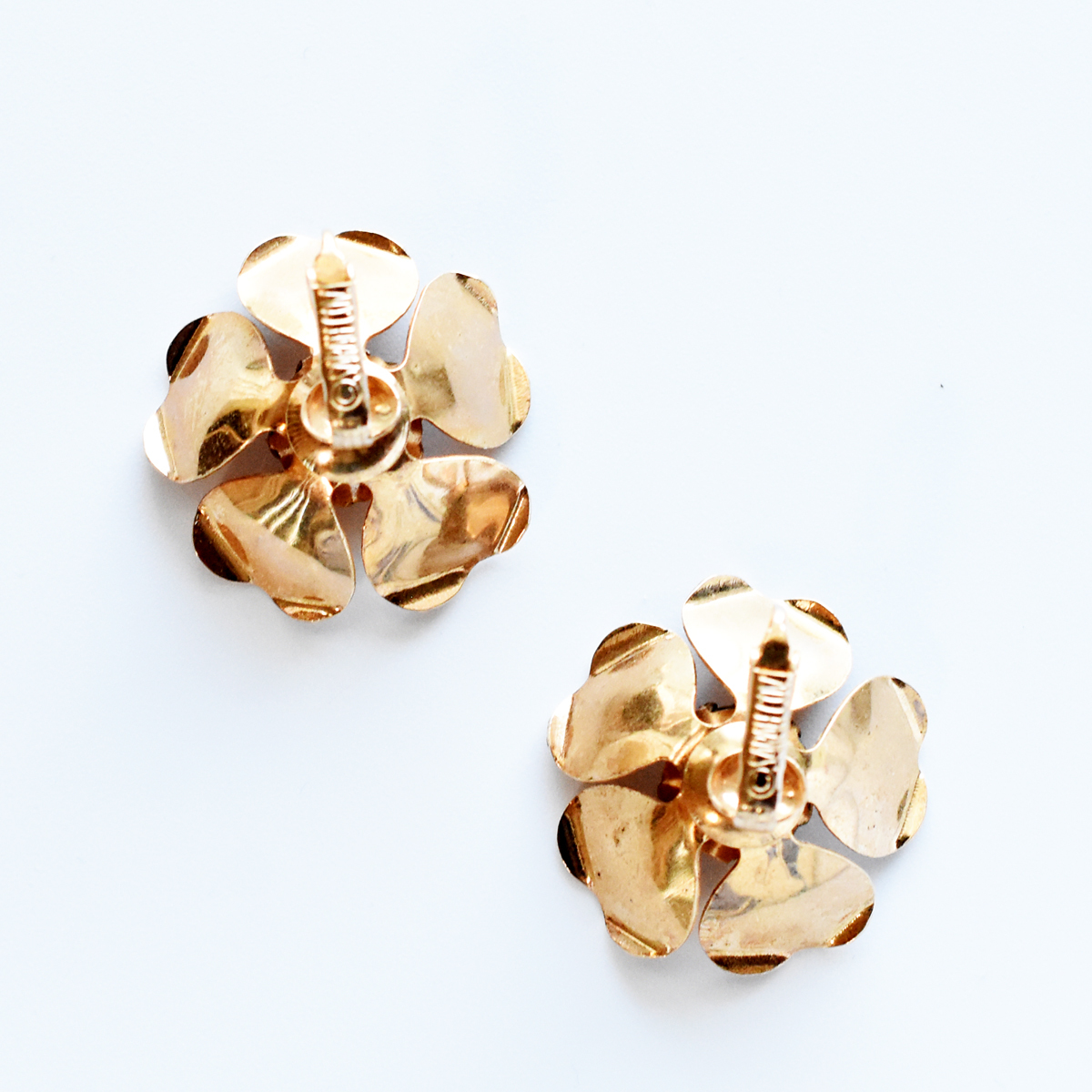 Vintage SARAH COVENTRY 1960’s goldmetal flowermotif earrings