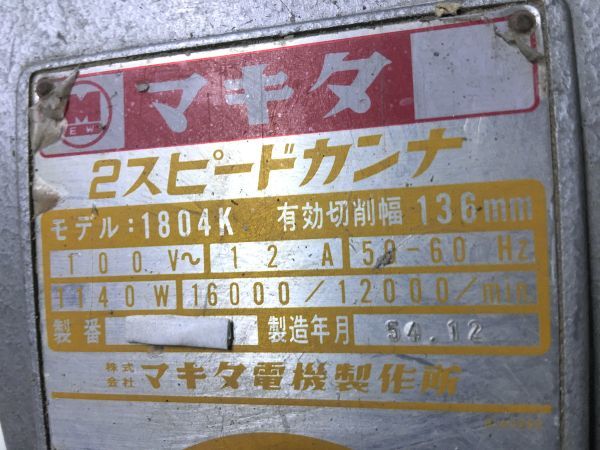 | N1-074◆makita マキタ 2スピードカンナ 鉋 電動鉋 電動工具 1804K (製造年月54.12/かんな/大工道具/約寸W200xH160xD440mm/約8.9kg) 現状品 |