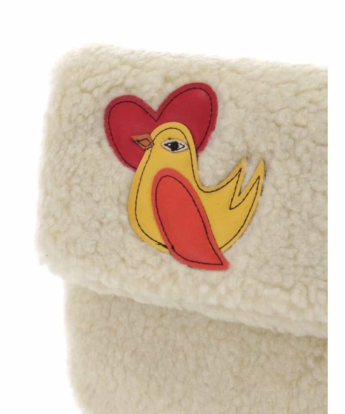 優しいカラーにボアのふわふわモコモコの素材。柔らかく、鳥モチーフの素敵なバッグです。