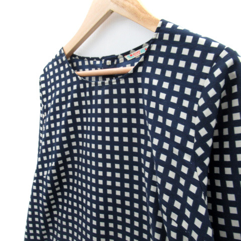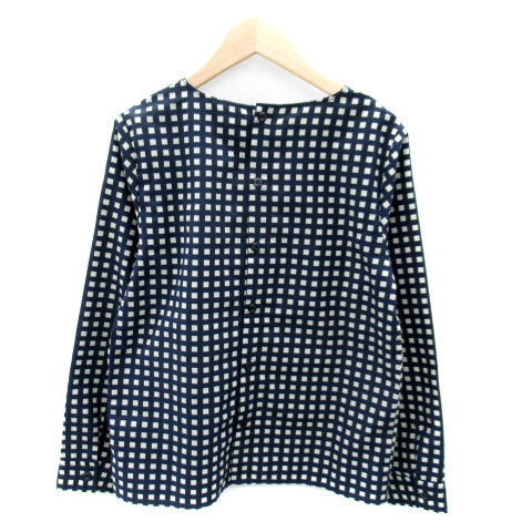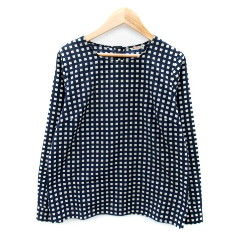 ビームスハート BEAMS HEART ブラウス カットソー 長袖 ラウンドネック グラフチェック柄 紺 ネイビー ベージュ /SY28 ■MO レディース