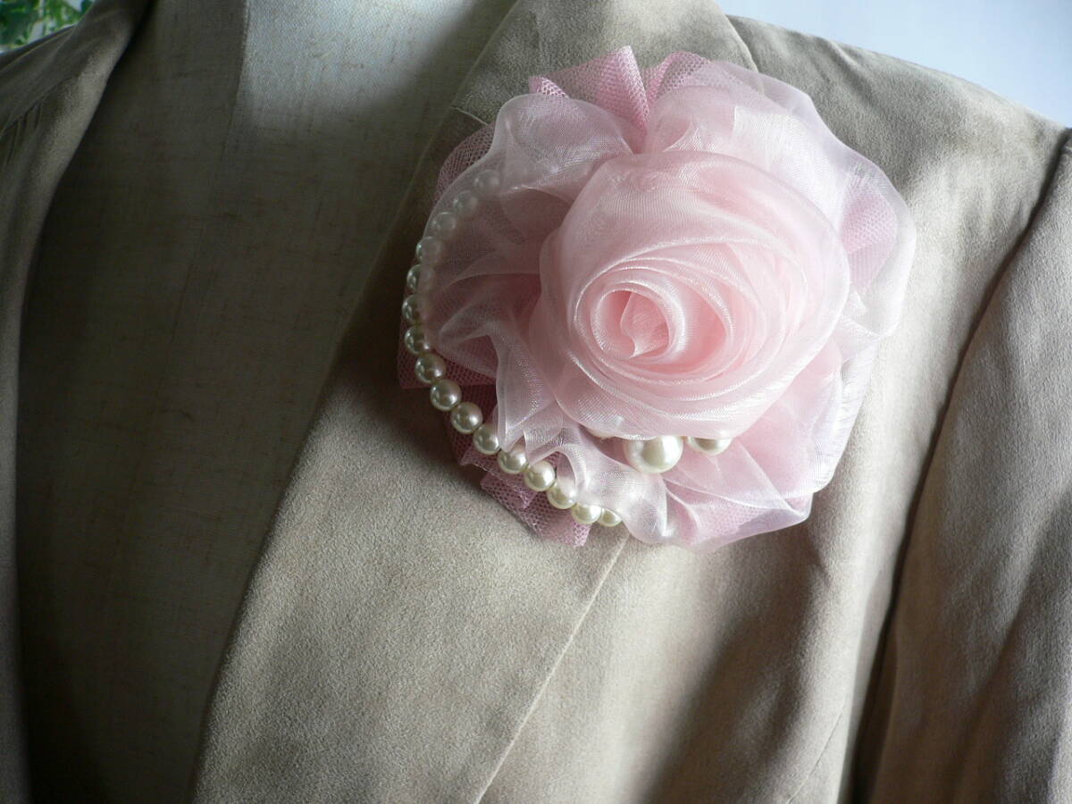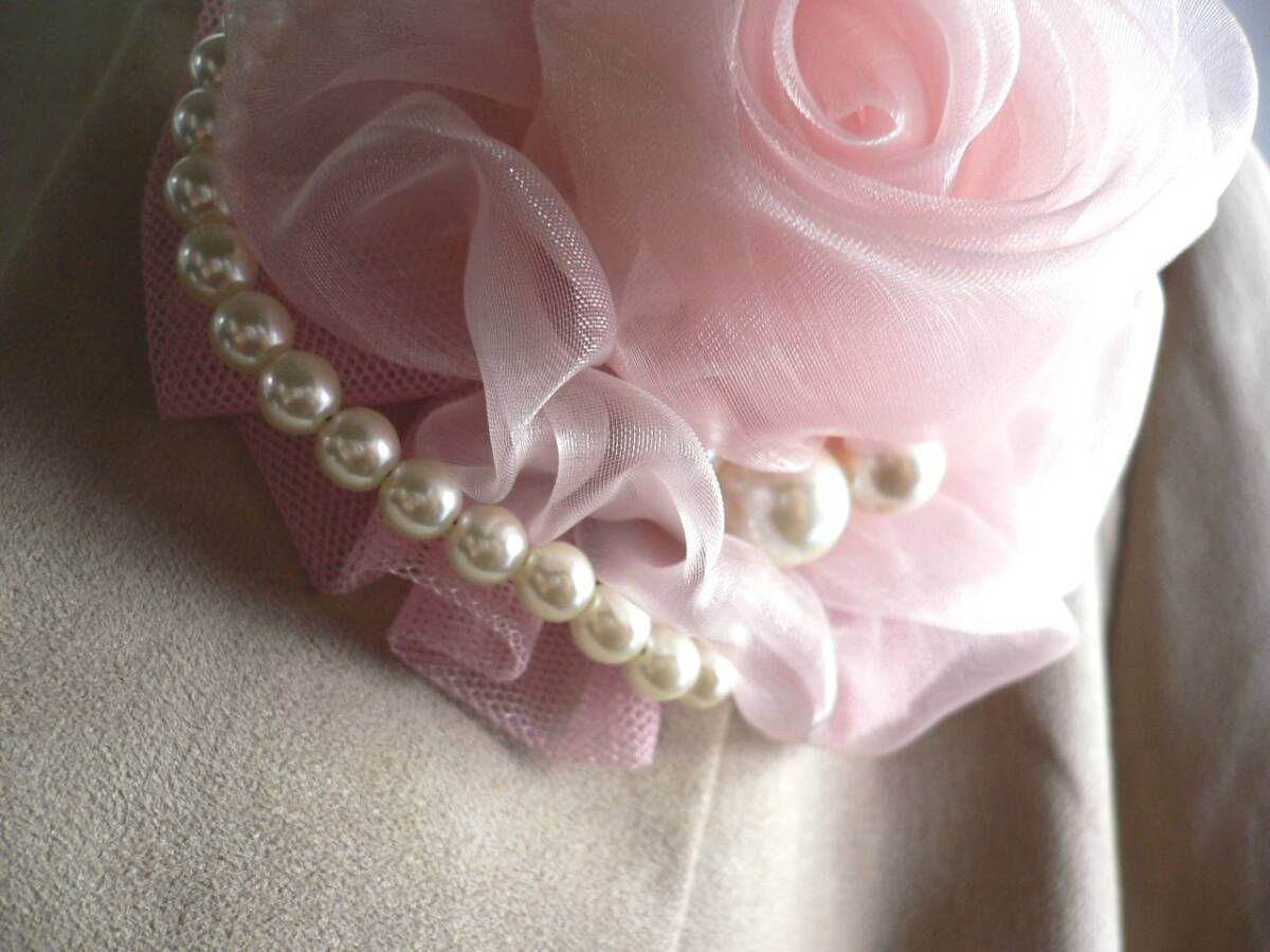 新品ピンク♪薔薇型パール付きフェミニンコサージュ入学式フォーマルセレモニー