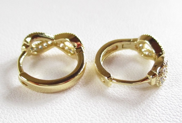 複雑なカットで美しい煌めきを放つキュービックジルコニアのフープピアスになります。吸い込まれるようなクリアな輝きはグレードの高いダイヤモンドに匹敵する魅力があります。