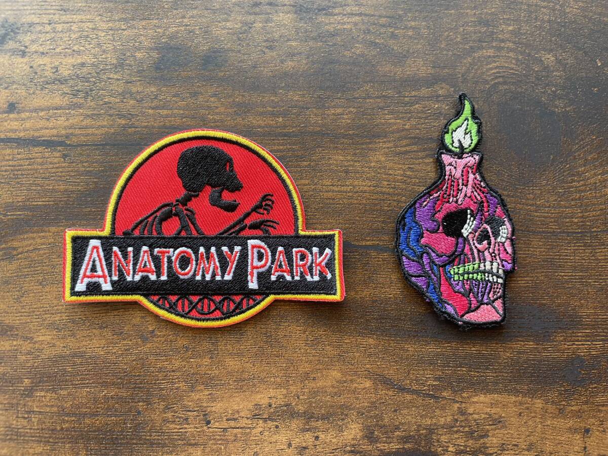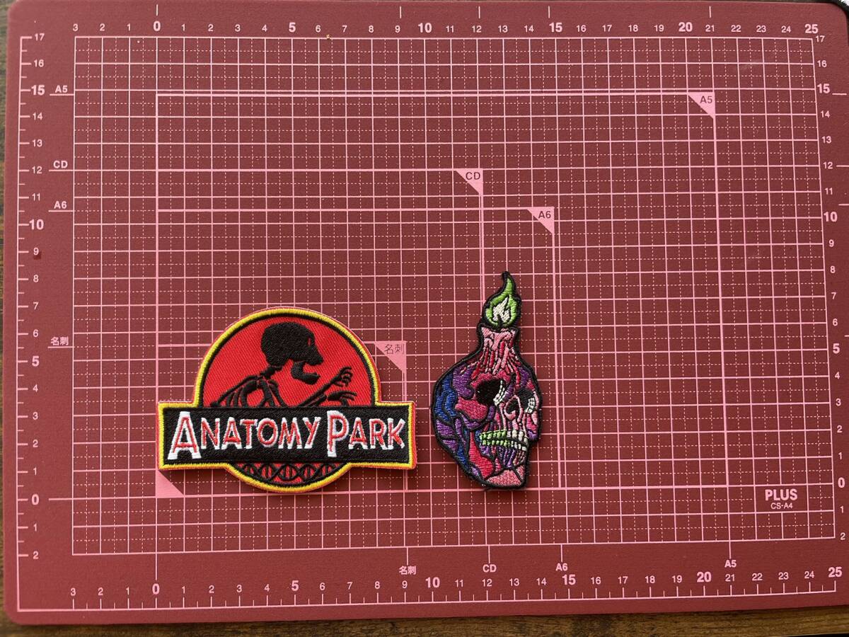 アイロンワッペン 刺繍ワッペン ドクロ スカル ジュラシックパーク風 Tシャツ 洋服 バイクウェア 補修 カスタム アプリケ 2枚A2
